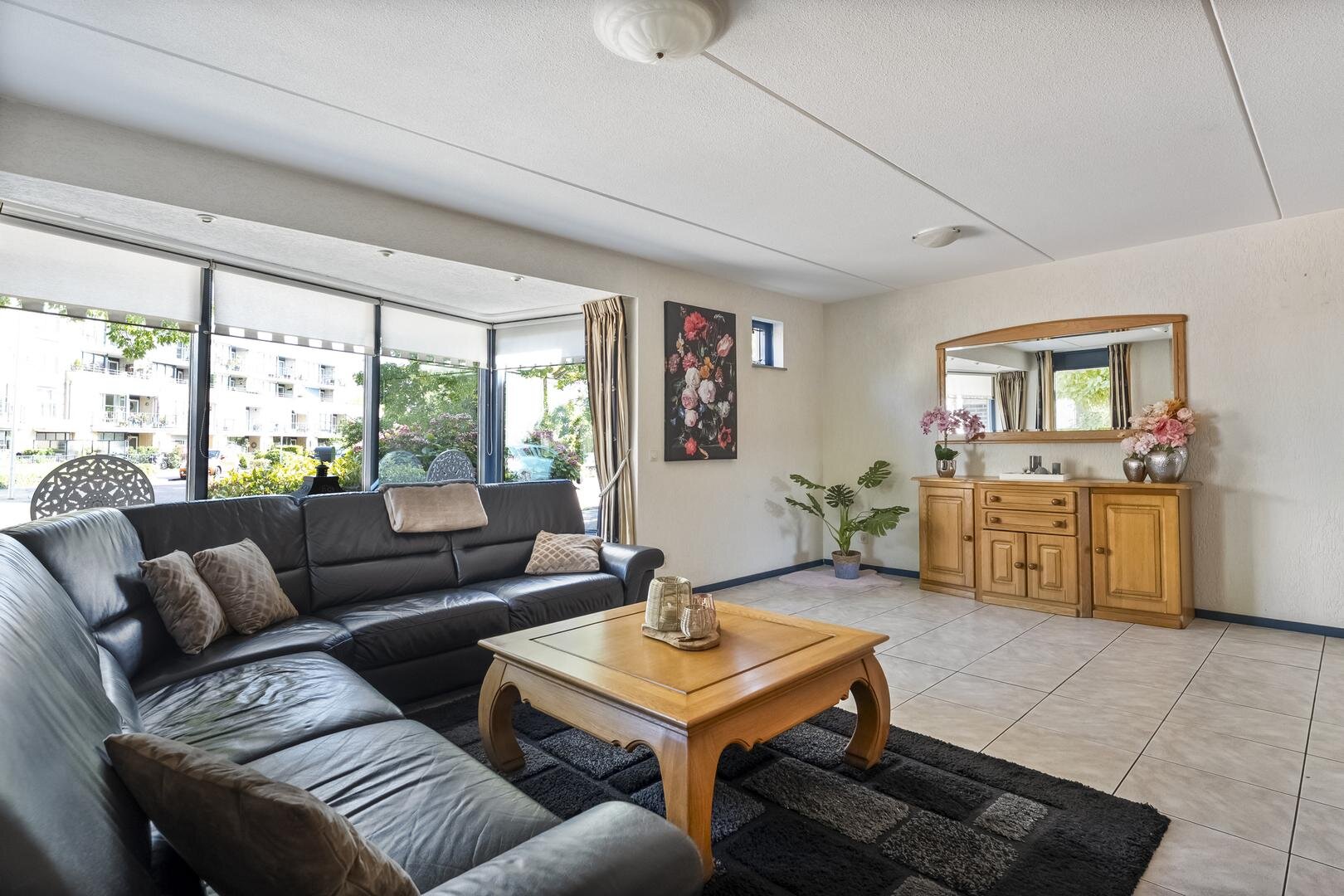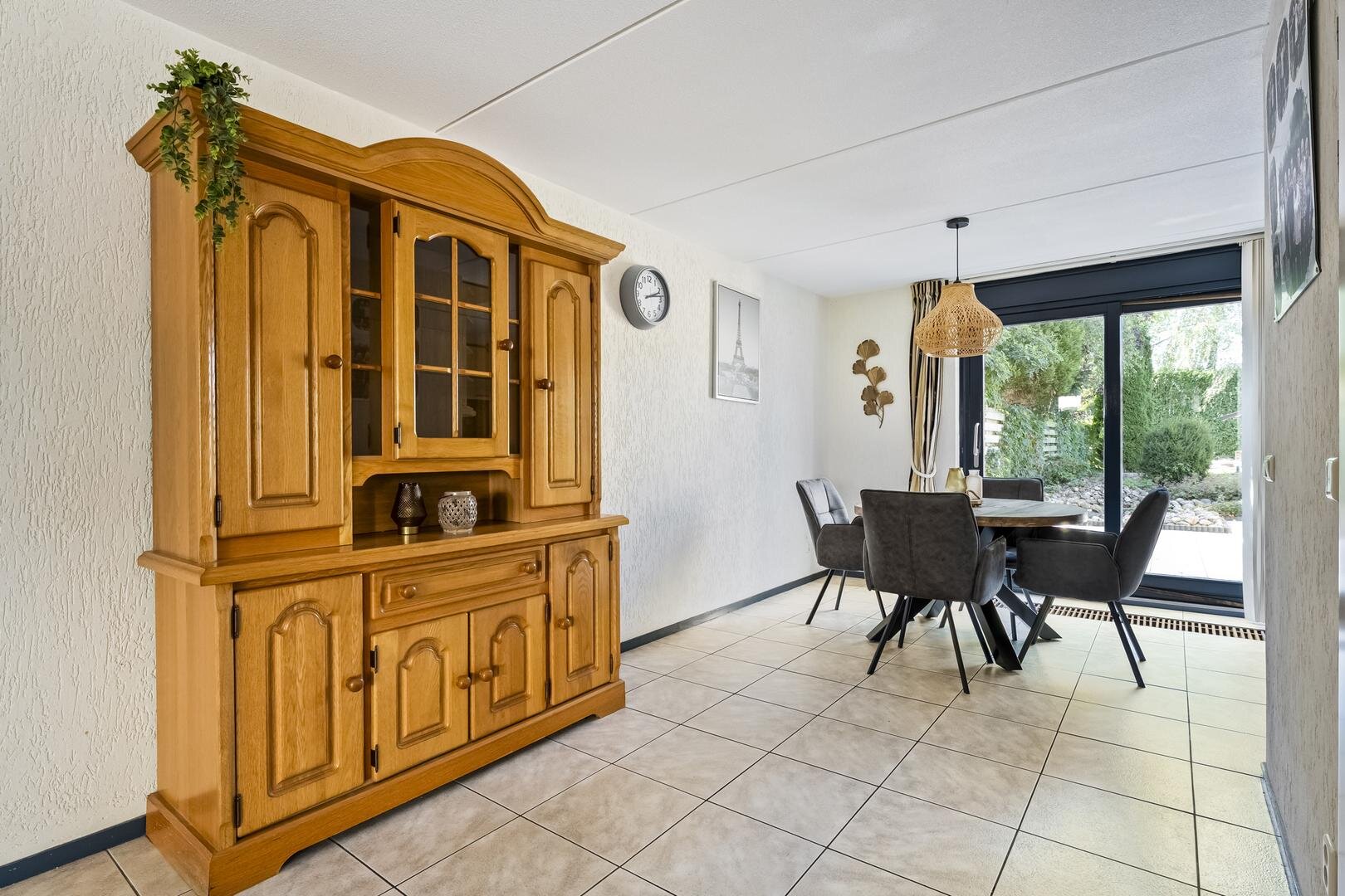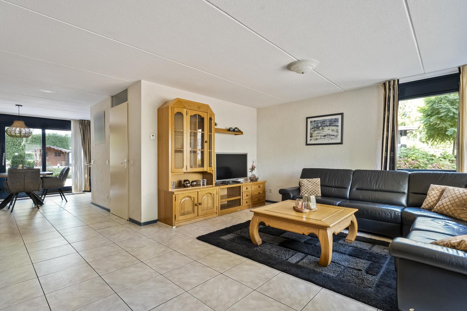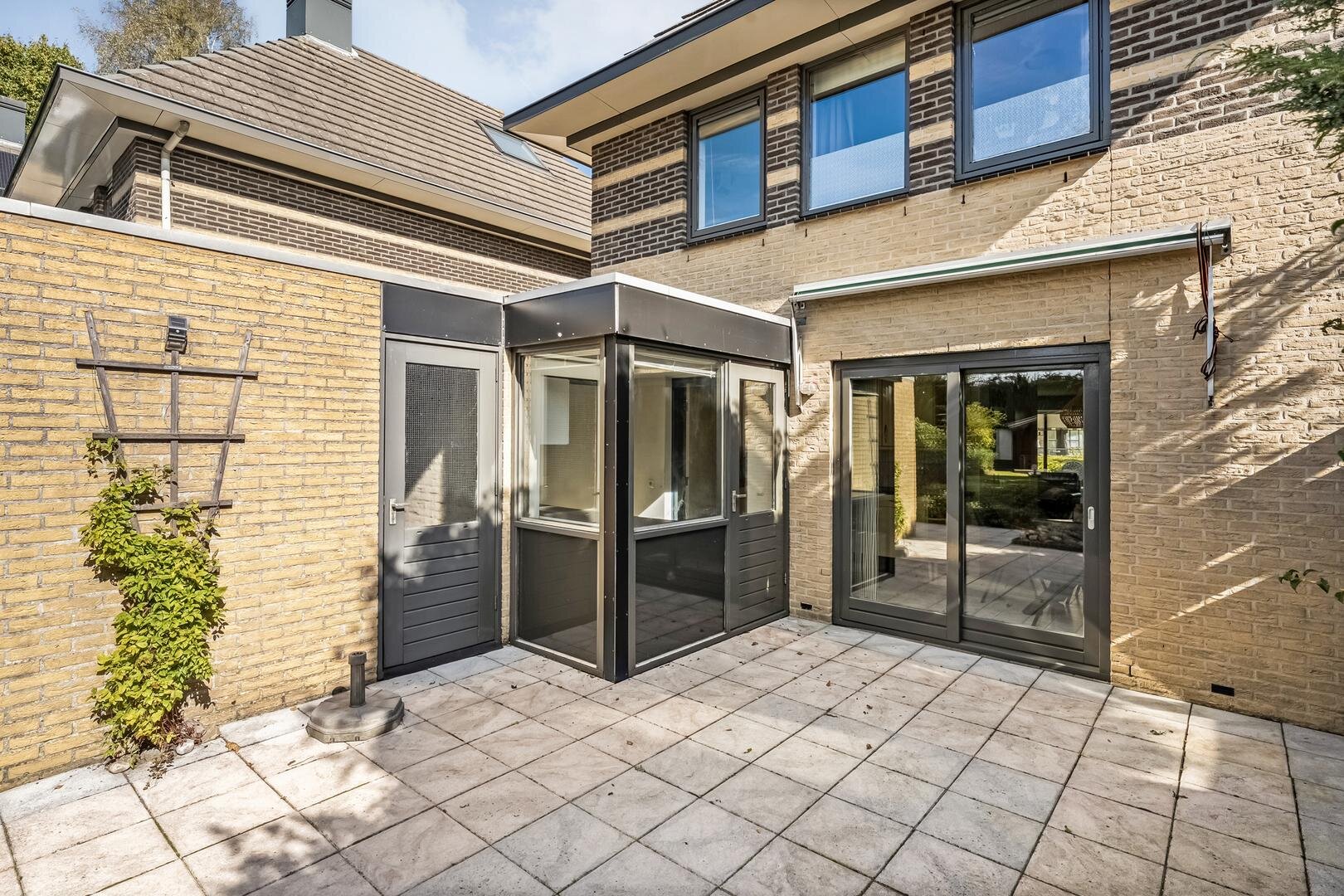 De tuin rondom de woning is royaal en biedt meerdere terrassen waar op elk moment van de dag een fijne plek in de zon of schaduw te vinden is. Het houten tuinhuis zorgt voor extra bergruimte en in de verlengde garage is volop plaats voor een auto, fietsen en gereedschap.