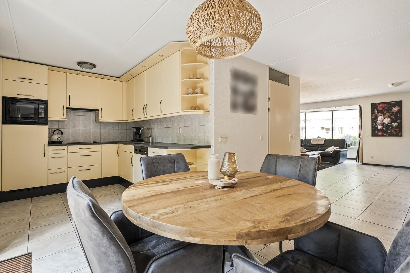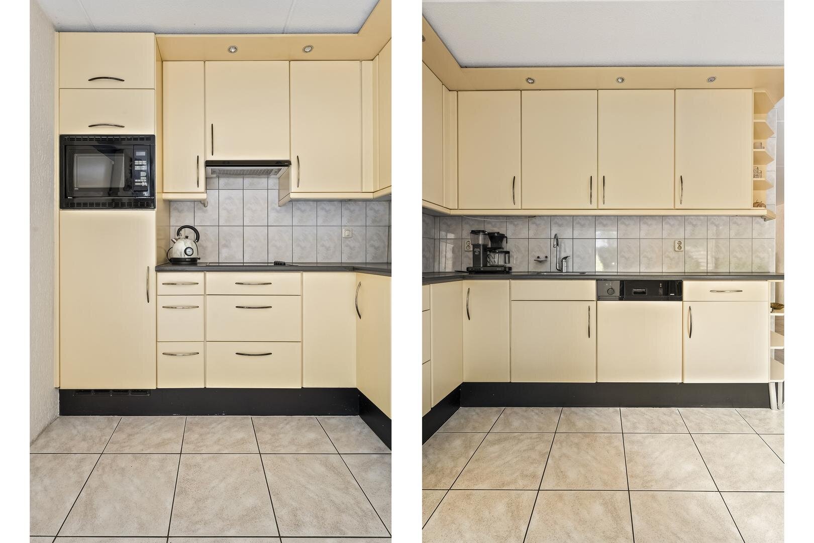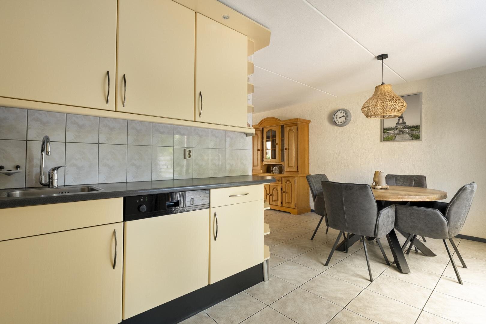 Begane grond: hal/entree met toilet. Woonkamer voorzien van een plavuizenvloer en schuifpui die toegang biedt tot het terras. Halfopen keuken voorzien van keramische kookplaat, koelkast, magnetron en vaatwasser. Bijkeuken met wasmachineaansluiting. Verlengde garage.