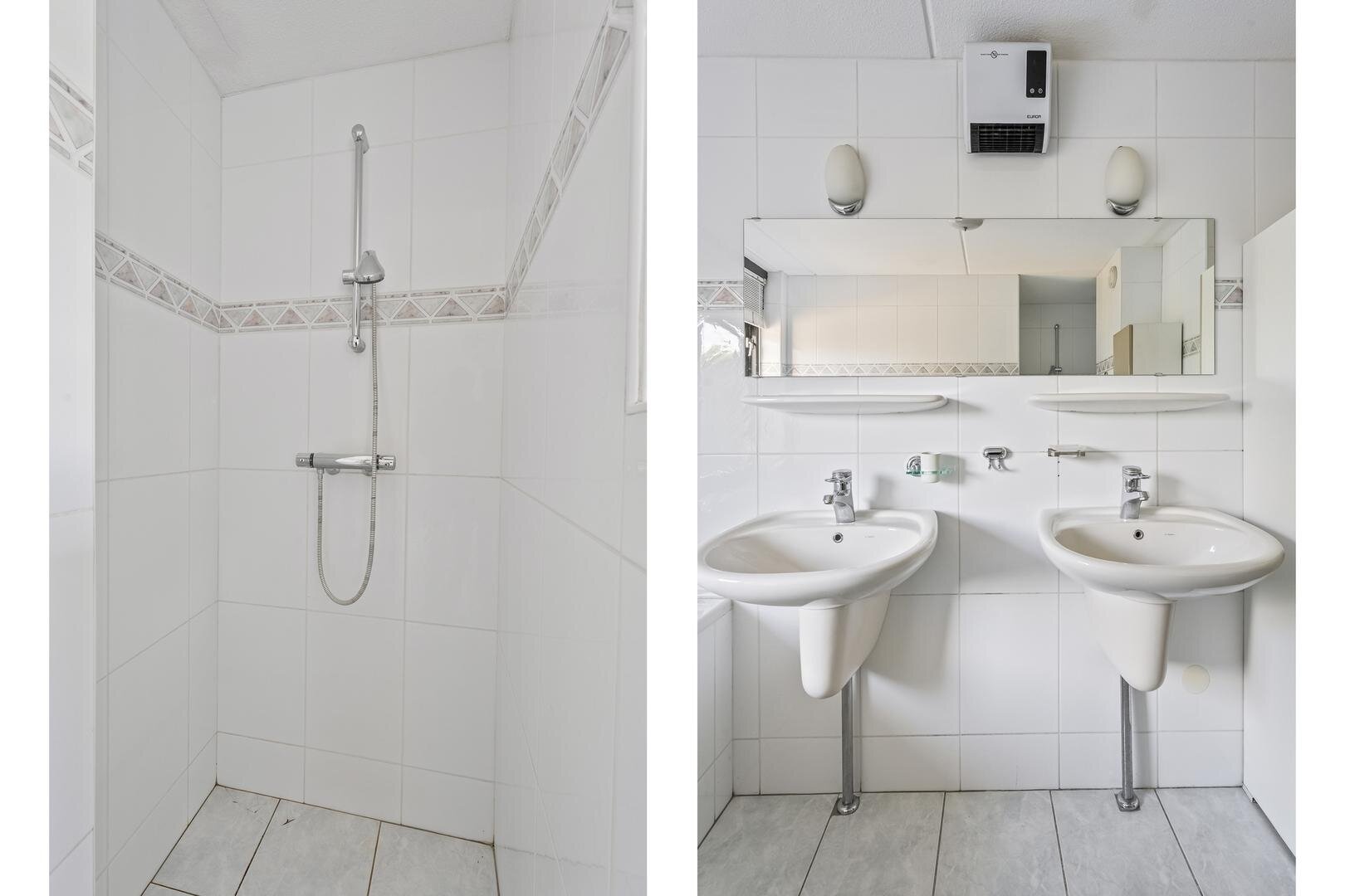 Eerste verdieping: 3 Slaapkamers. Badkamer met douche, ligbad, dubbele wastafel en toilet. Via vaste trap naar...