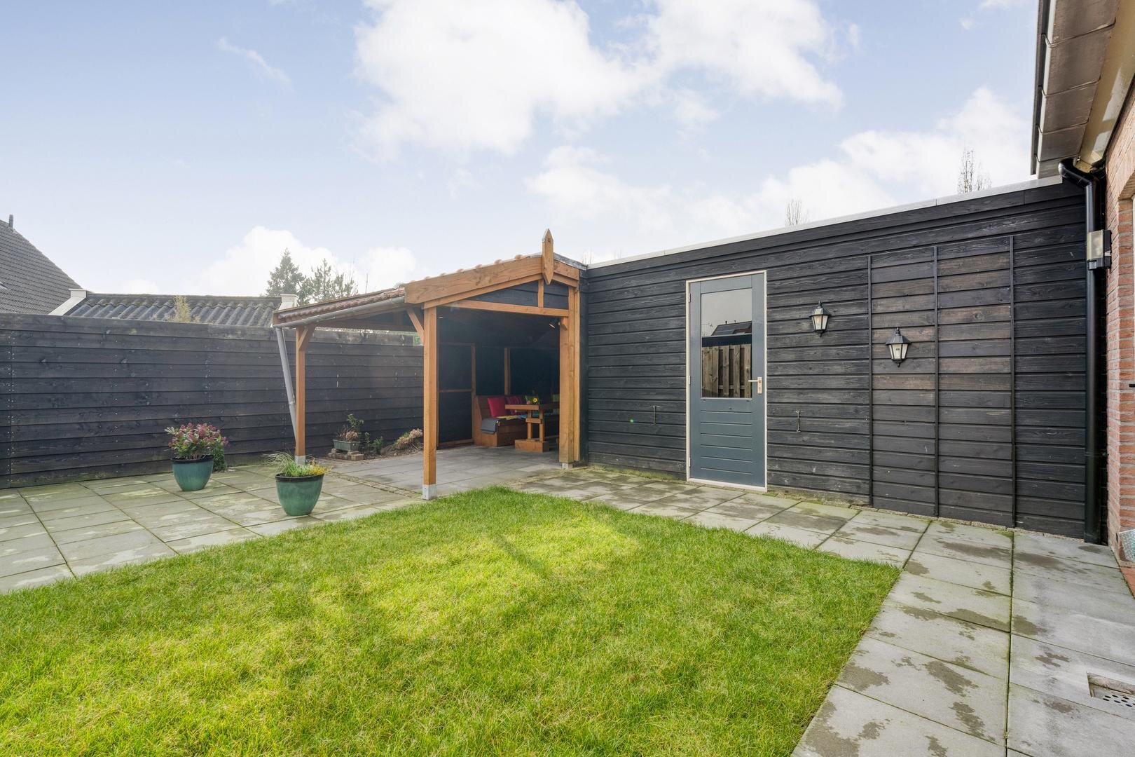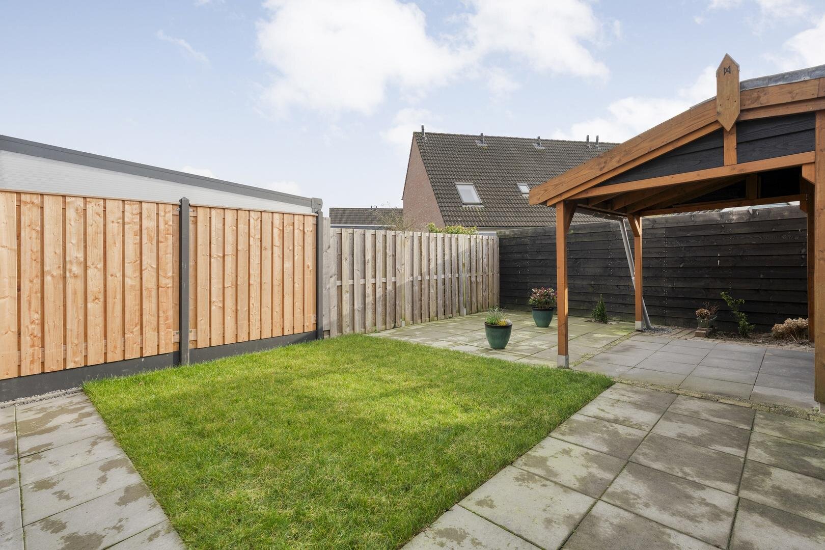 De tuin op het zuiden gelegen met overkapping biedt volop mogelijkheden om van het buitenleven te genieten. De grote oprit zorgt ervoor dat parkeren op eigen terrein geen probleem is.
