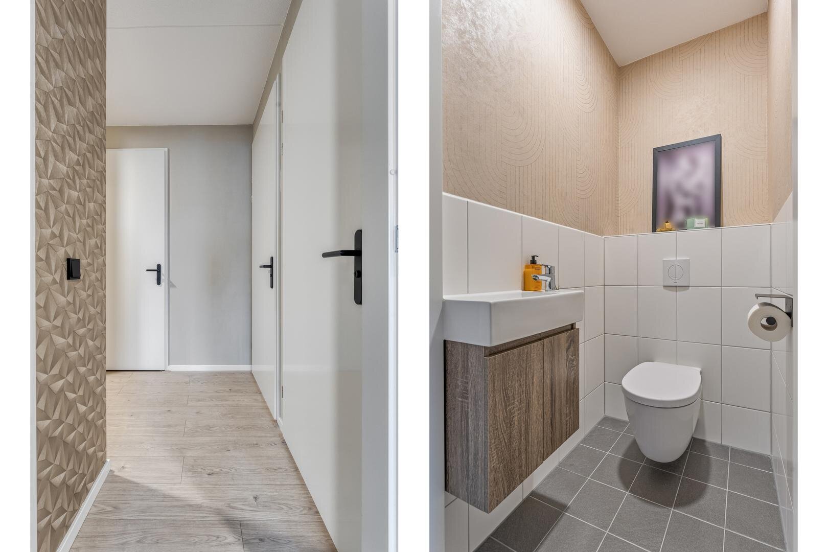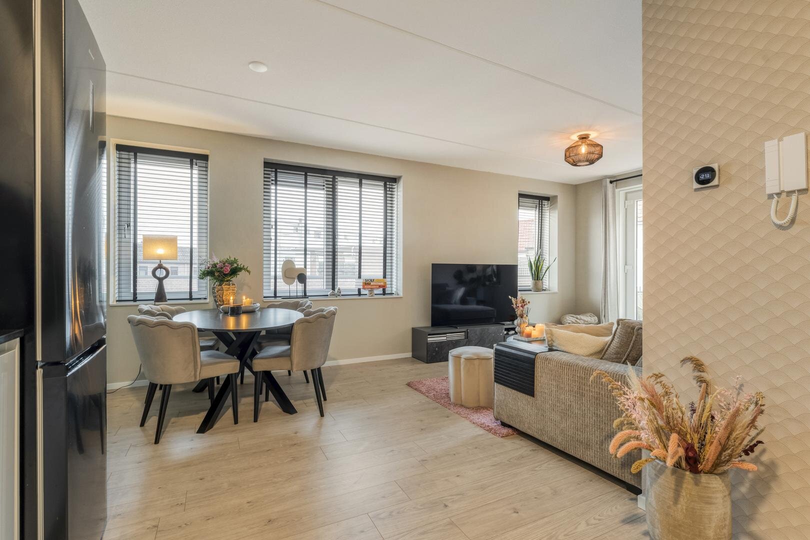 - vloerverwarming en laminaat door de hele woning;