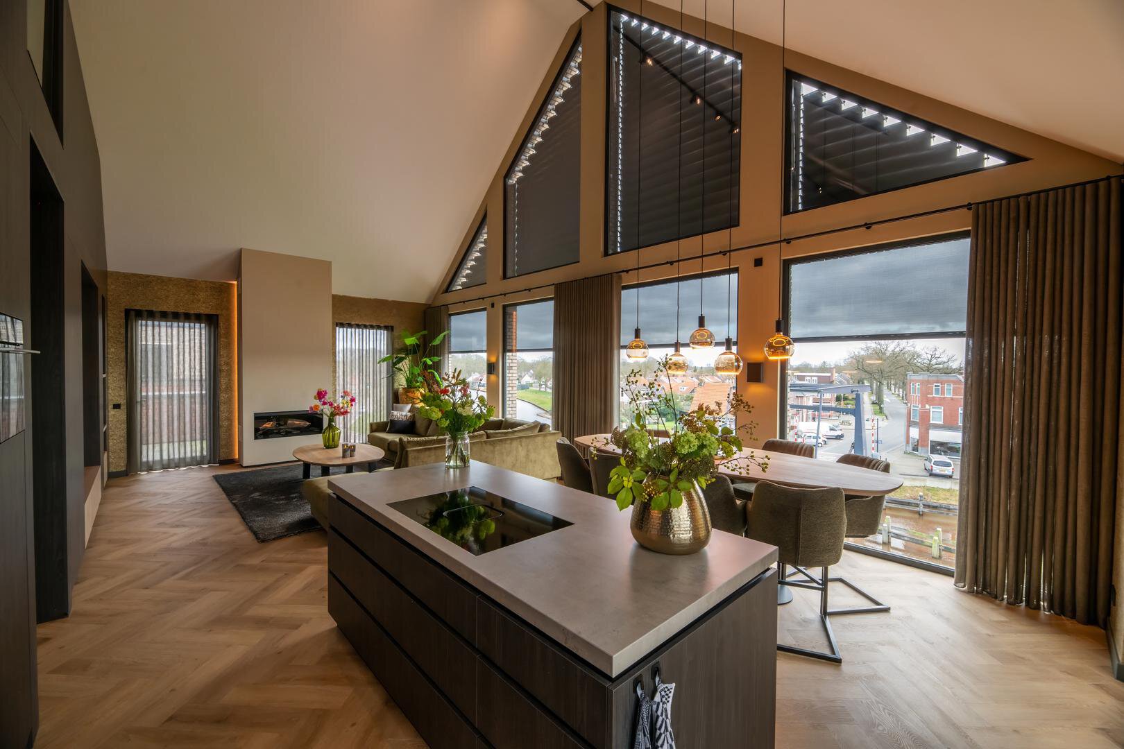 Stap binnen in een wereld van verfijning en comfort. De onder architectuur gerealiseerde afwerking straalt exclusiviteit uit, met een op maat ontworpen interieur, een hoogwaardig uitgevoerde keuken, twee luxe badkamers en een indrukwekkende vide. Een jacuzzi, schitterende inbouwkasten en een haardpartij maken de beleving compleet. De hoge plafonds en royale raampartijen zorgen voor een ongekende lichtinval en versterken het gevoel van ruimte en vrijheid.