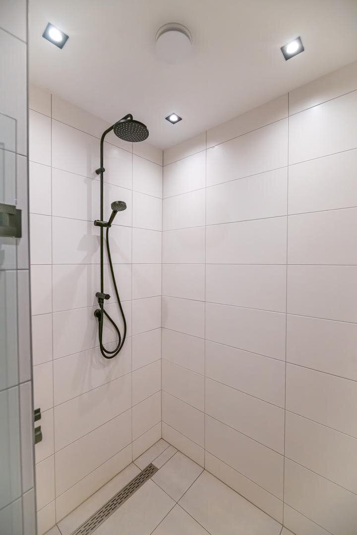 Een moderne ontvangsthal verwelkomt u in deze uitzonderlijke woning. Hier bevinden zich de garderobe, het gastentoilet en de toegang tot de drie ruime slaapkamers. De master bedroom is een ware privésuite, compleet met een ruime inloopkast en een exclusieve open badkamer. De twee extra slaapkamers zijn eveneens voorzien van luxe maatwerkkasten en delen een stijlvolle gastenbadkamer.