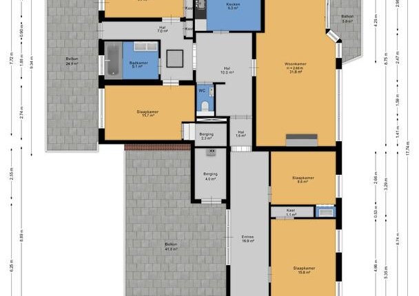 Groot dakterras plm 70 m².