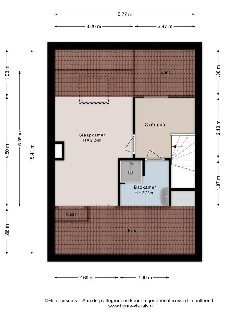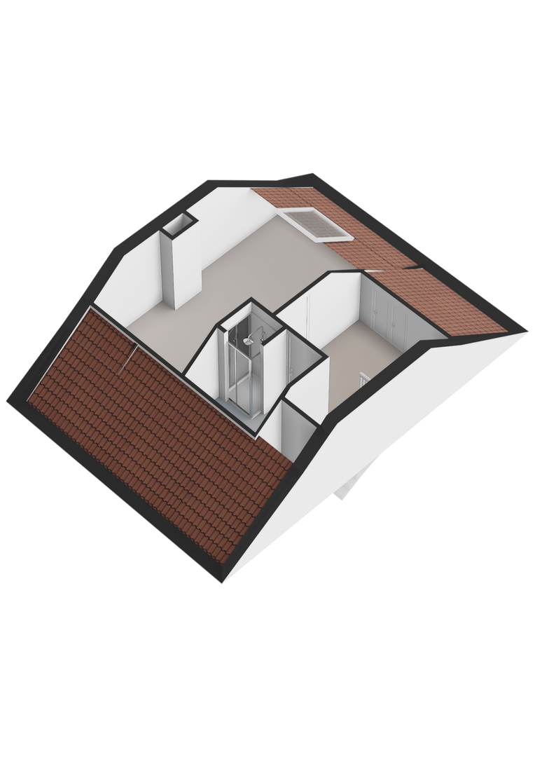 Tweede verdieping: Via vaste trap te bereiken overloop. Badkamer met douche en wastafel. Vierde slaapkamer voorzien van dakraam. CV-ketel.