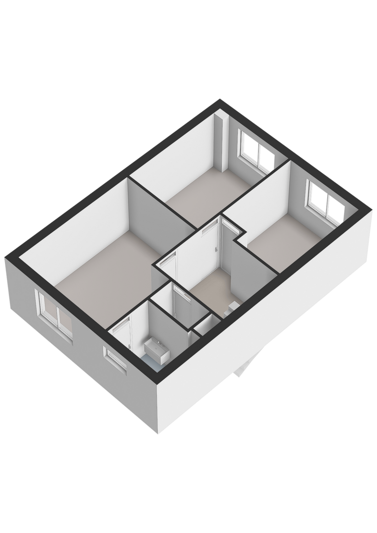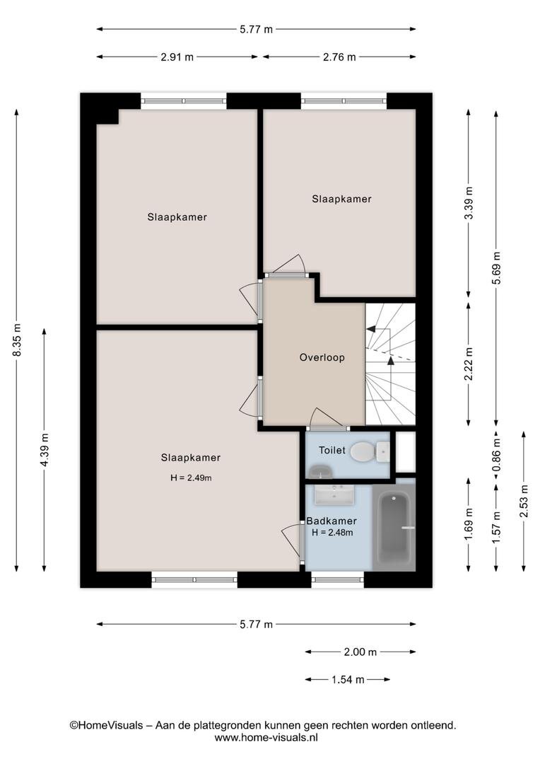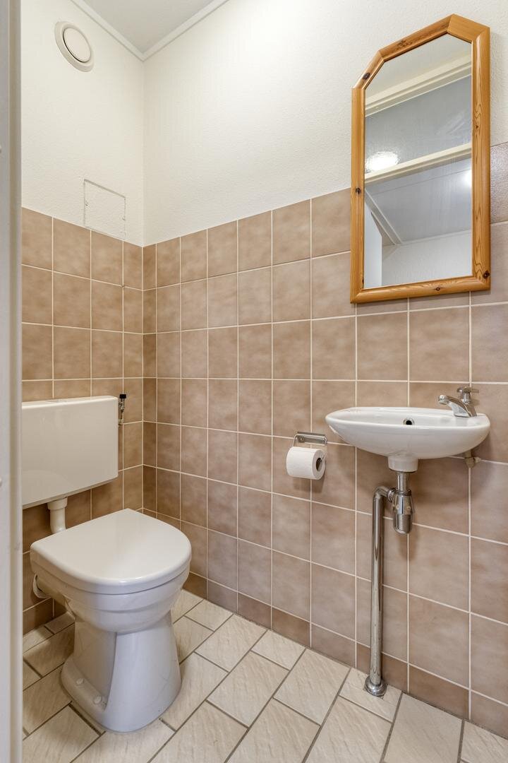Eerste verdieping: Overloop met toilet. Drie slaapkamers, waarvan één slaapkamer beschikt over een badkamer met ligbad, douche en wastafelmeubel.