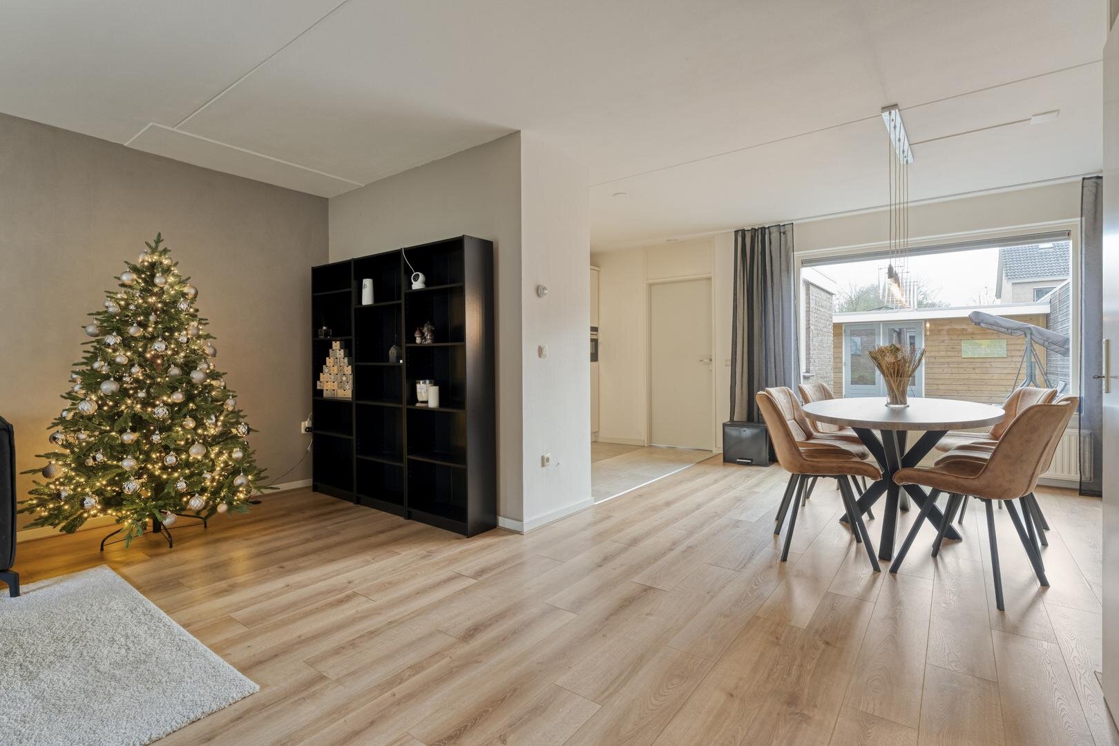 Begane grond: Hal/entree met toilet. Ruime woonkamer met trapkast. Eetgedeelte met zonwering en veel lichtinval. Halfopen keuken voorzien van inductiekookplaat, vaatwasser, oven, koelkast en spoelbak. Aangrenzend de bijkeuken met wasmachineaansluiting.