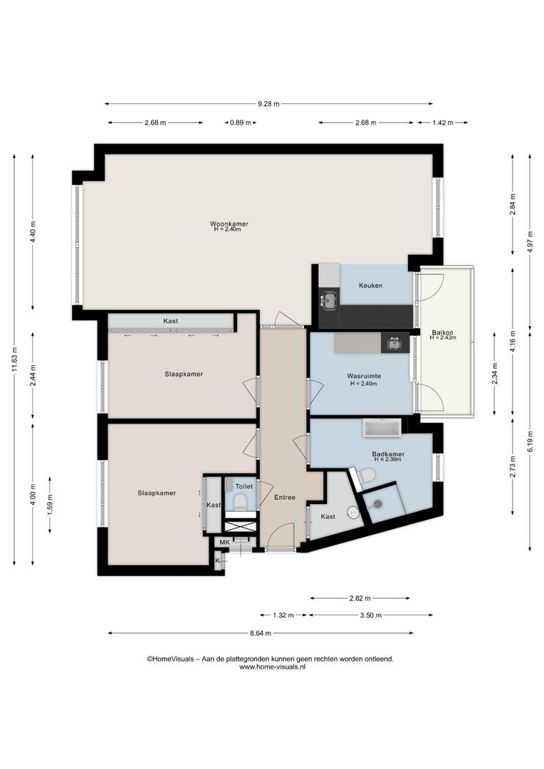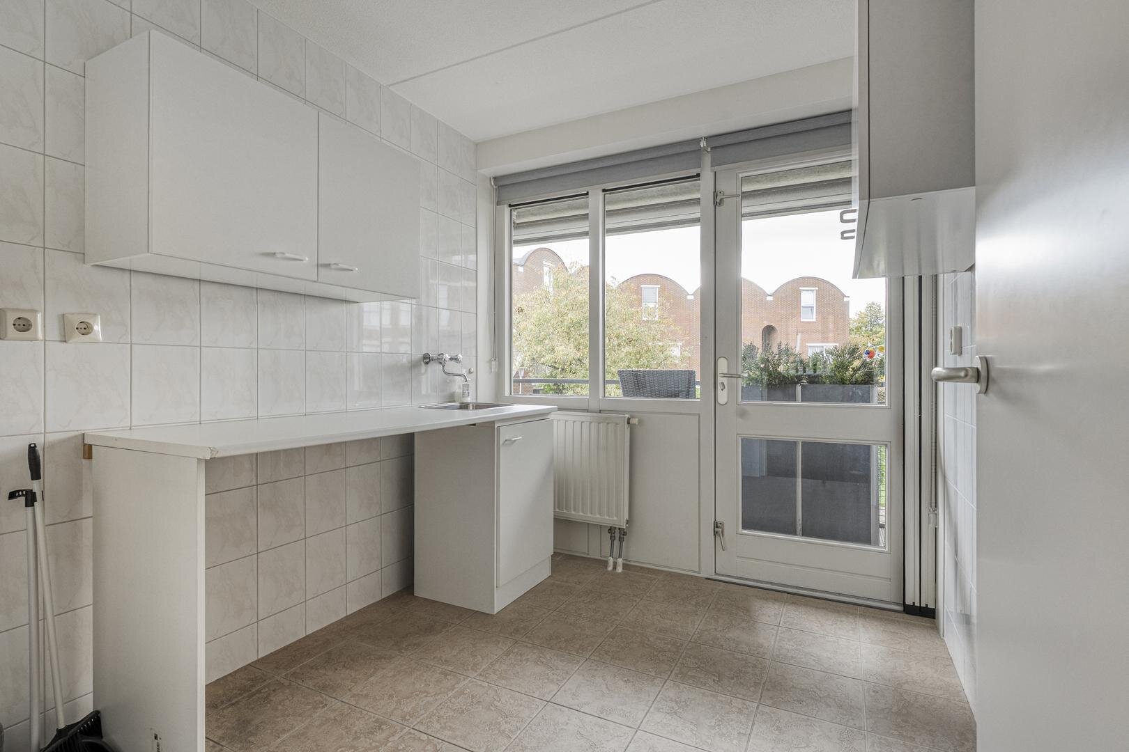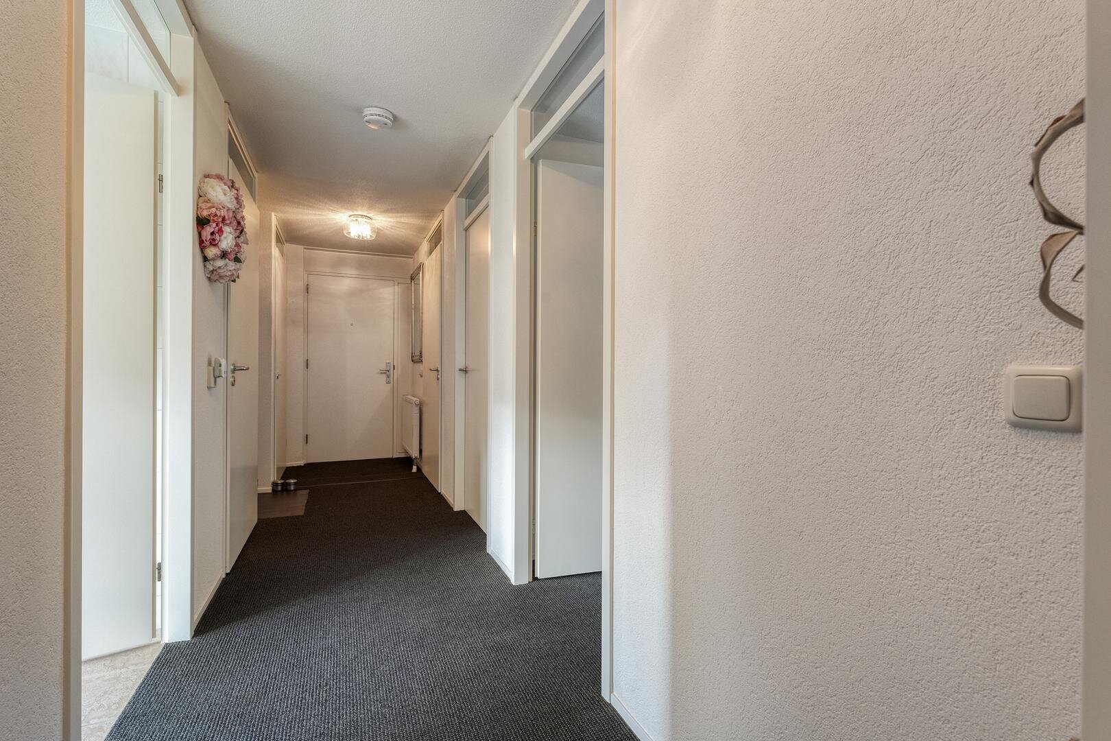 Woonkamer voorzien van screens en wandkasten. Open keuken met deur naar het balkon die op het zuiden gesitueerd is. Inbouwkeuken in hoekopstelling voorzien van een 4 pits gastoestel met afzuigkap, vaatwasser, koelkast, quoocker en combimagnetron. Bijkeuken met wasmachineaansluiting. Twee slaapkamers. Badkamer met douche, toilet en wastafelmeubel.