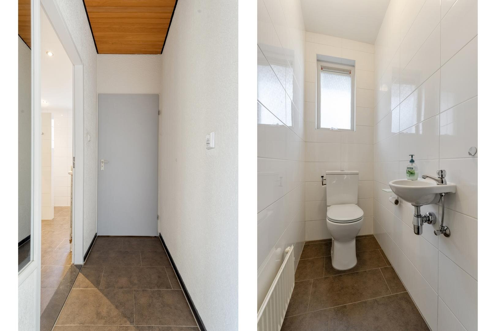 Eerste verdieping: Overloop met cv ruimte. Drie slaapkamers waarvan één met balkon. Badkamer voorzien van toilet, inloopdouche en wastafelmeubel.