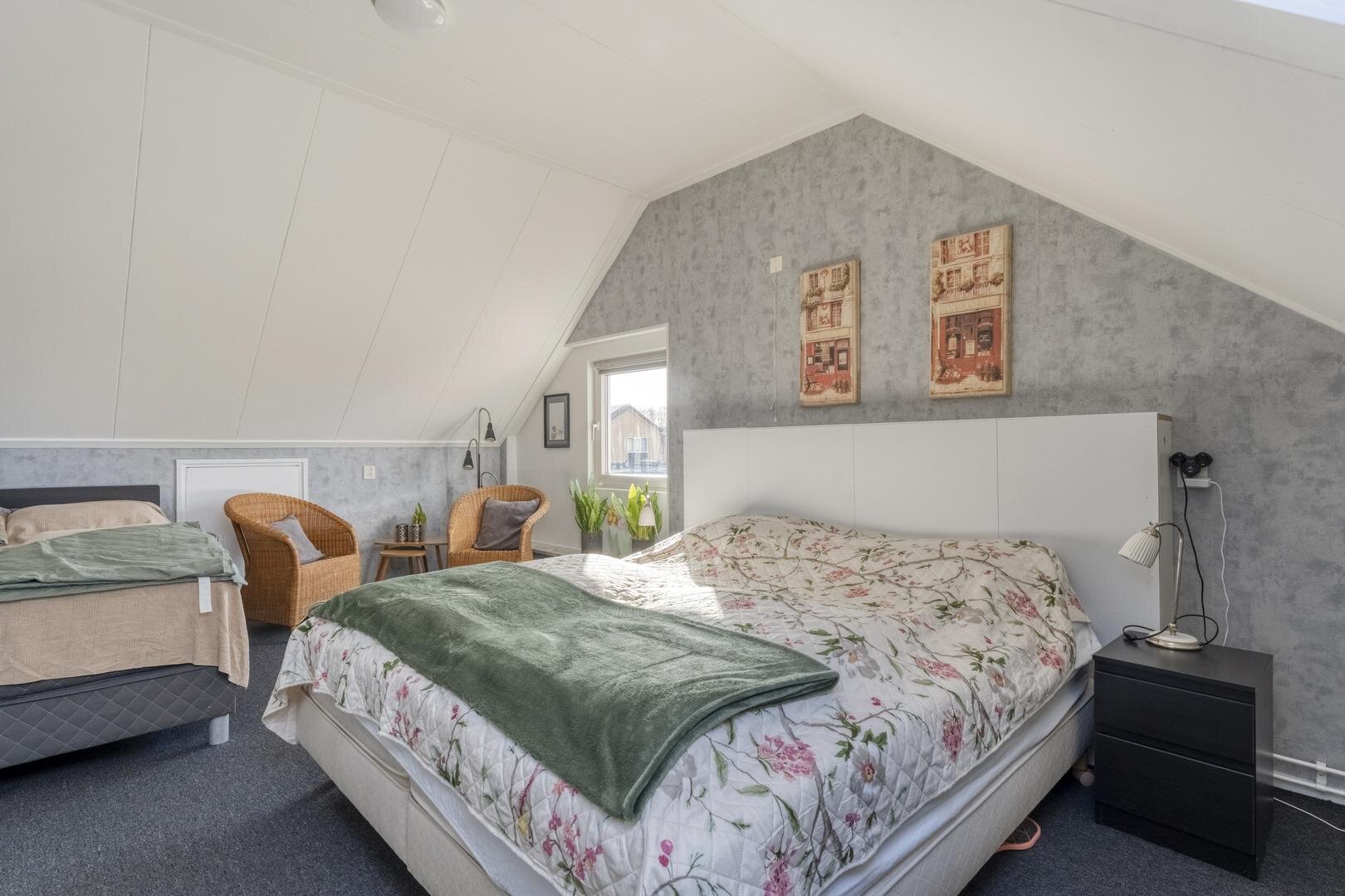 De woning beschikt over vier slaapkamers en maar liefst twee badkamers, waardoor er voldoende ruimte is voor een gezin of bijvoorbeeld werken aan huis.