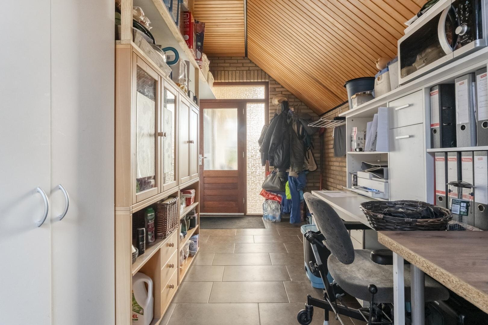 Berging/bijkeuken voorzien van wasmachineaansluiting.