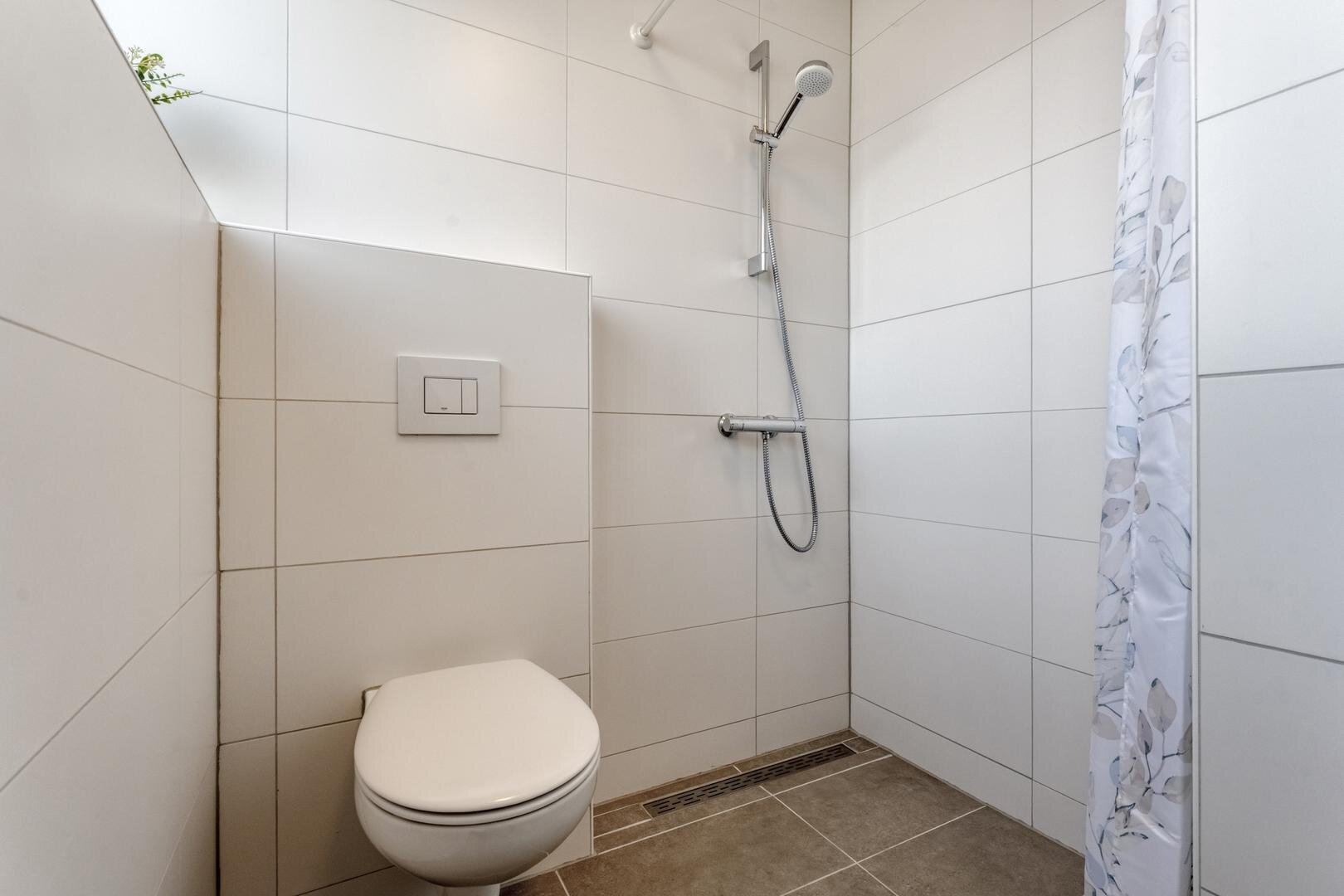 Ruime slaapkamer (4 x 4,4). Badkamer voorzien van inloopdouche en wastafelmeubel.