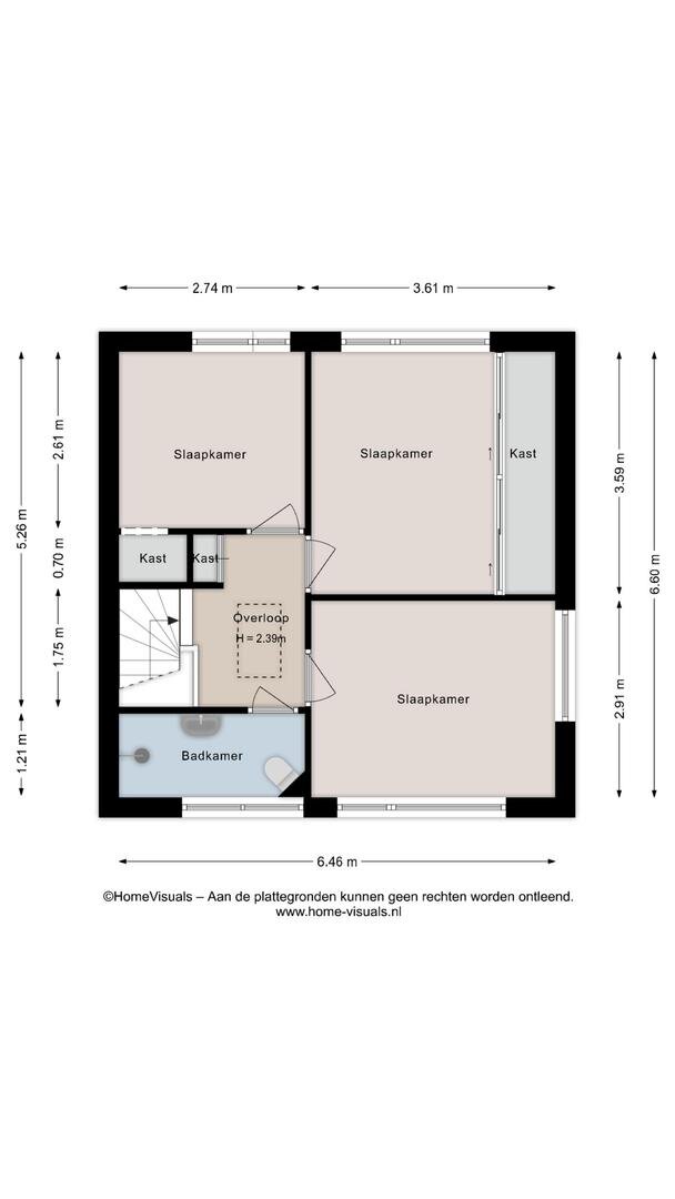 Eerste verdieping: Overloop met vaste kast. Drie slaapkamers waarvan twee met vaste kasten. Badkamer voorzien van wastafel, douche en toilet.