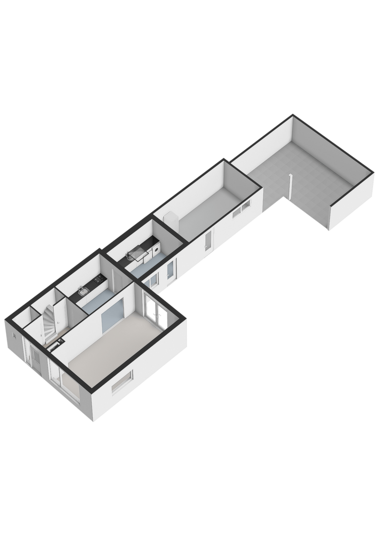 Begane grond: Entree met toilet en provisiekast. Halfopen keuken voorzien van keukenblok en gaskookplaat. Doorzonwoonkamer met openslaande deuren naar de tuin en laminaatvloer. Ruime bijkeuken met wasmachineaansluiting en lichtkoepel.