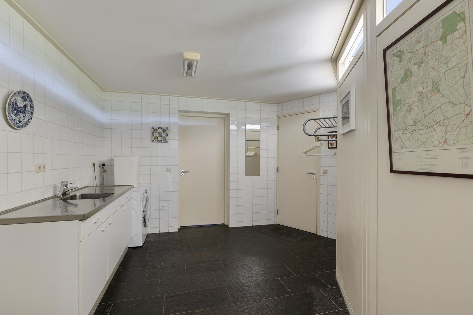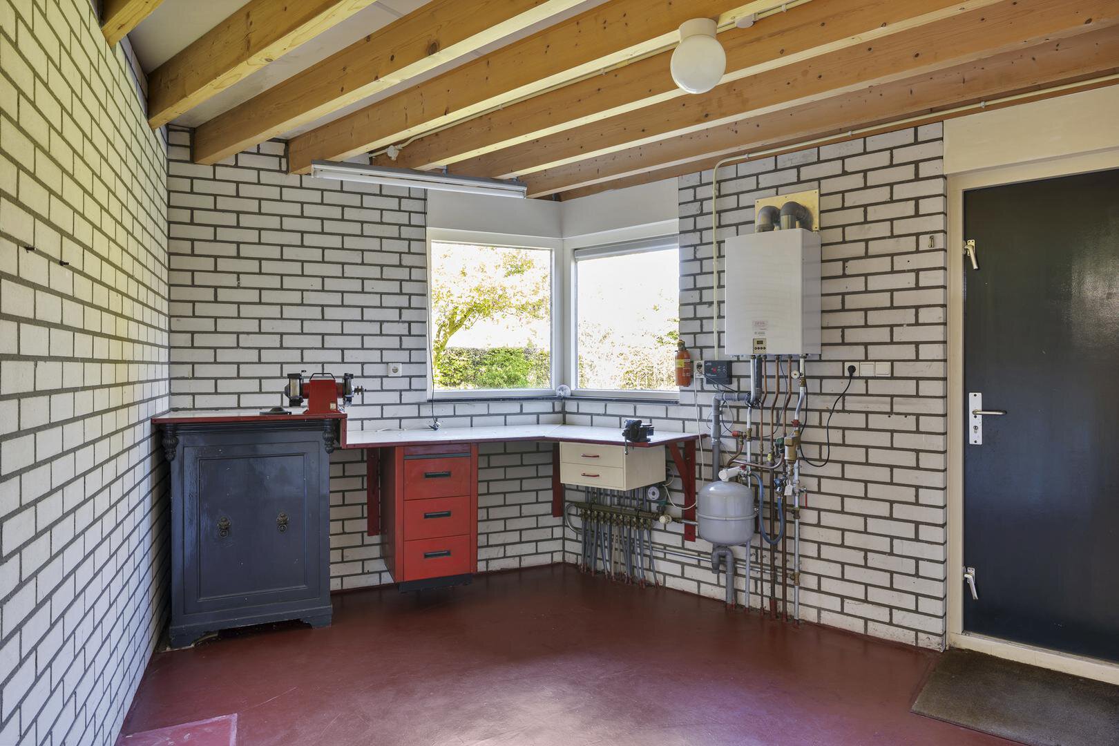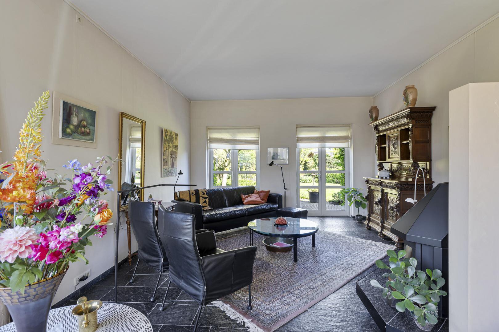 Begane grond: hal/entree met toilet. Ruime living, tuingericht met openslaande deuren naar het terras en Noorse leistenen vloer met vloerverwarming. Halfopen keuken voorzien van apparatuur. O.a.: inductiekookplaat, vaatwasser, koelkast, combimagnetron en oven. Slaapkamer met openslaande deuren naar het terras met en-suite de badkamer. Deze is voorzien van een dubbele wastafel, wirlpool en inloopdouche. Bijkeuken met wasmachineaansluiting, keukenblok en kastenwand. Werkkamer met de cv-ketel, vaste kastenwand, stortbak en vloerverwarming. Extra brede garage voorzien van een elektrische deur, spouwmuur en verwarming. De hal, living, slaapkamers, keuken, zithoek, eethoek hebben hoge plafonds, wat een mooi ruimtelijk effect geeft.