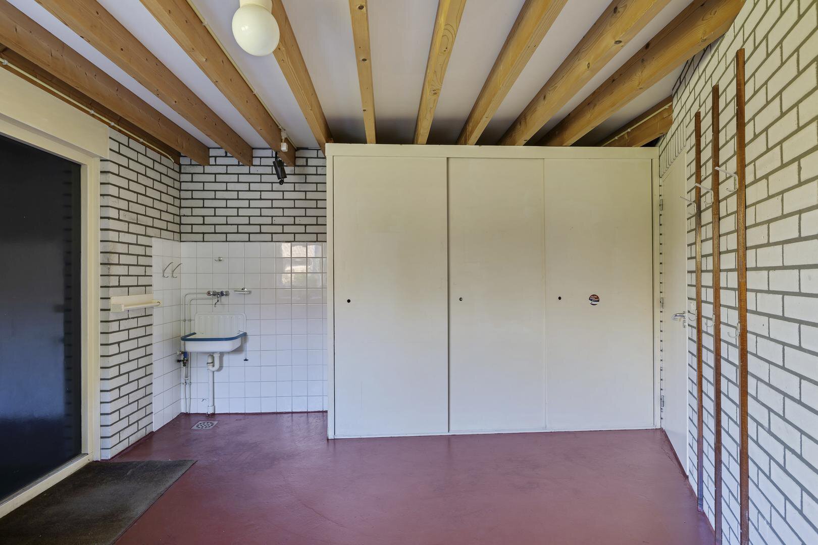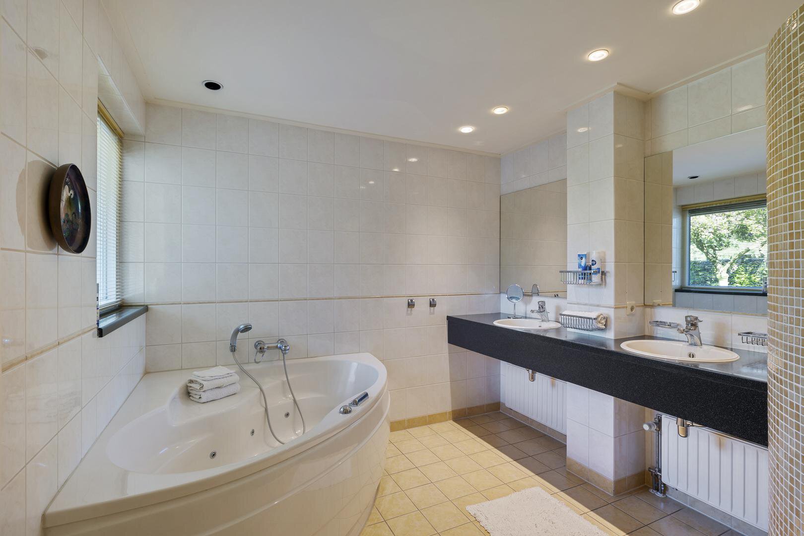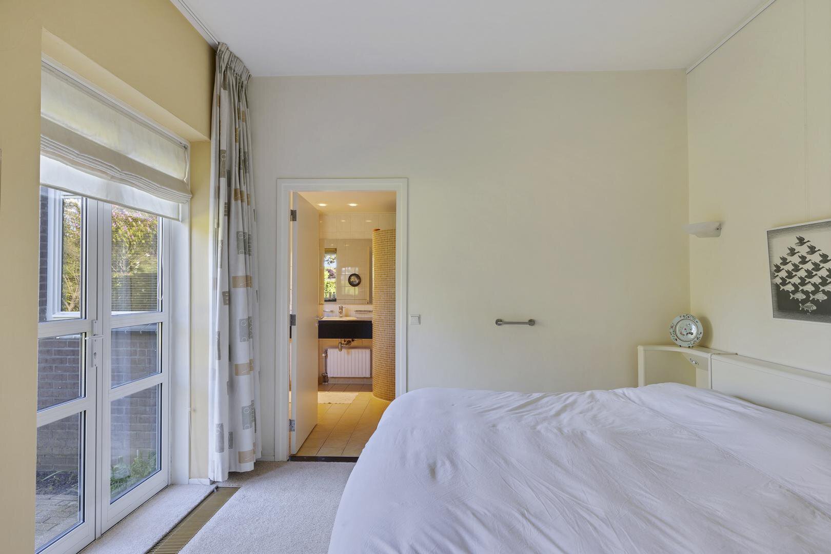 Begane grond: hal/entree met toilet. Ruime living, tuingericht met openslaande deuren naar het terras en Noorse leistenen vloer met vloerverwarming. Halfopen keuken voorzien van apparatuur. O.a.: inductiekookplaat, vaatwasser, koelkast, combimagnetron en oven. Slaapkamer met openslaande deuren naar het terras met en-suite de badkamer. Deze is voorzien van een dubbele wastafel, wirlpool en inloopdouche. Bijkeuken met wasmachineaansluiting, keukenblok en kastenwand. Werkkamer met de cv-ketel, vaste kastenwand, stortbak en vloerverwarming. Extra brede garage voorzien van een elektrische deur, spouwmuur en verwarming. De hal, living, slaapkamers, keuken, zithoek, eethoek hebben hoge plafonds, wat een mooi ruimtelijk effect geeft.