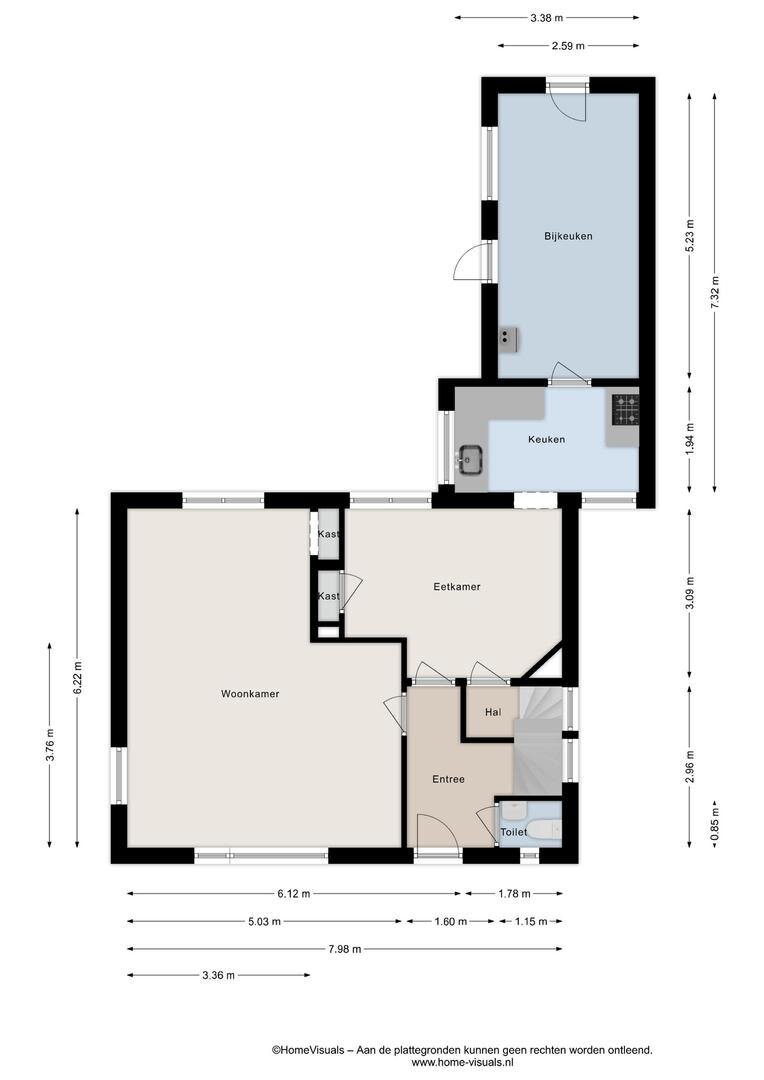 Begane grond: hal/entree met toilet. L-vormige woonkamer met uitzicht over het water/kanaal en voorzien van een laminaatvloer. Eetkamer met laminaatvloer. Keuken met 4pits gastoestel en afzuigkap. Berging met wasmachineaansluiting, cv-ketel en toegang naar de tuin.