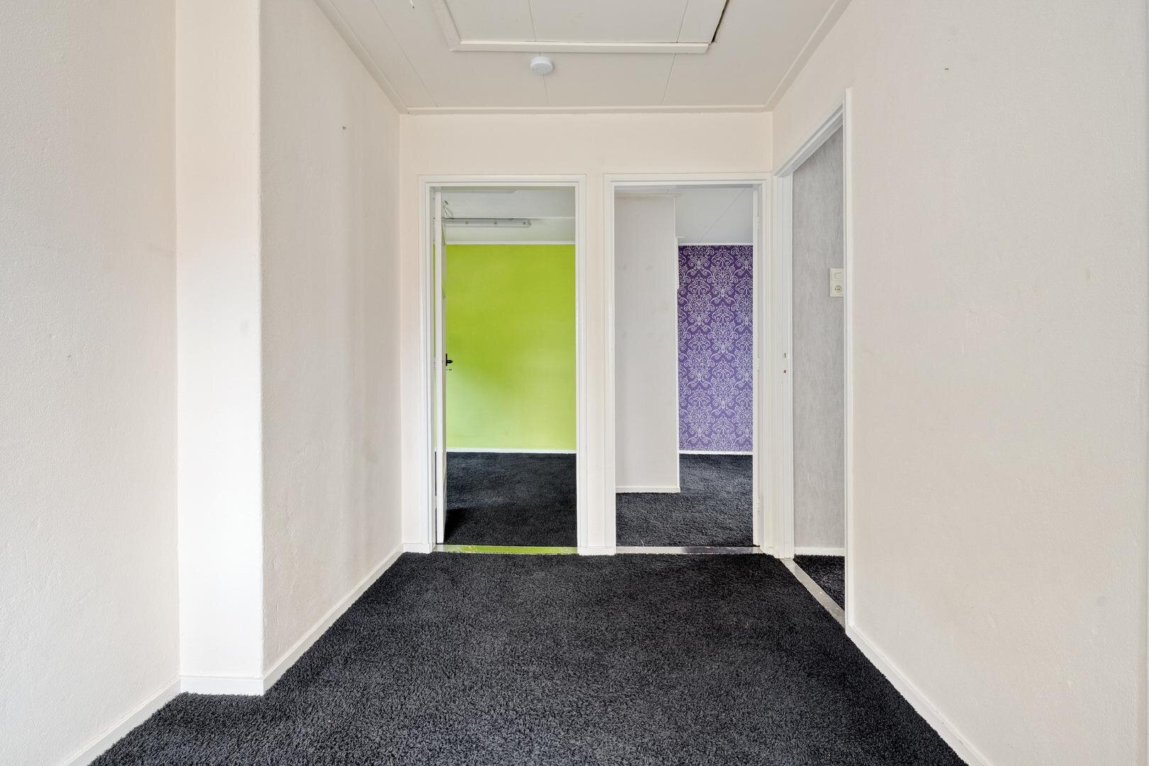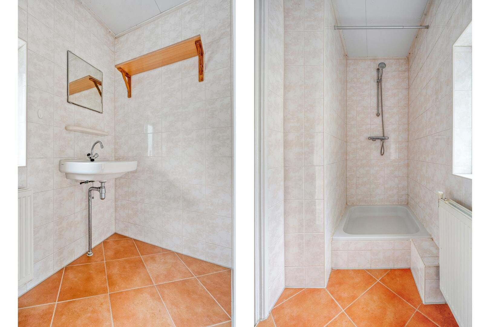 Eerste verdieping: overloop met vlizotrap naar de vliering. Badkamer met douche en wastafel. 4 Slaapkamers, allen voorzien van vloerbedekking en één met balkon.