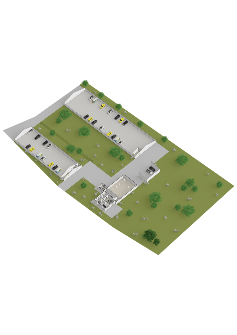 - 2 grote schuren waarvan 1 van circa 20x65 mtr en 1 van circa 15x48 mtr (met kantoor);