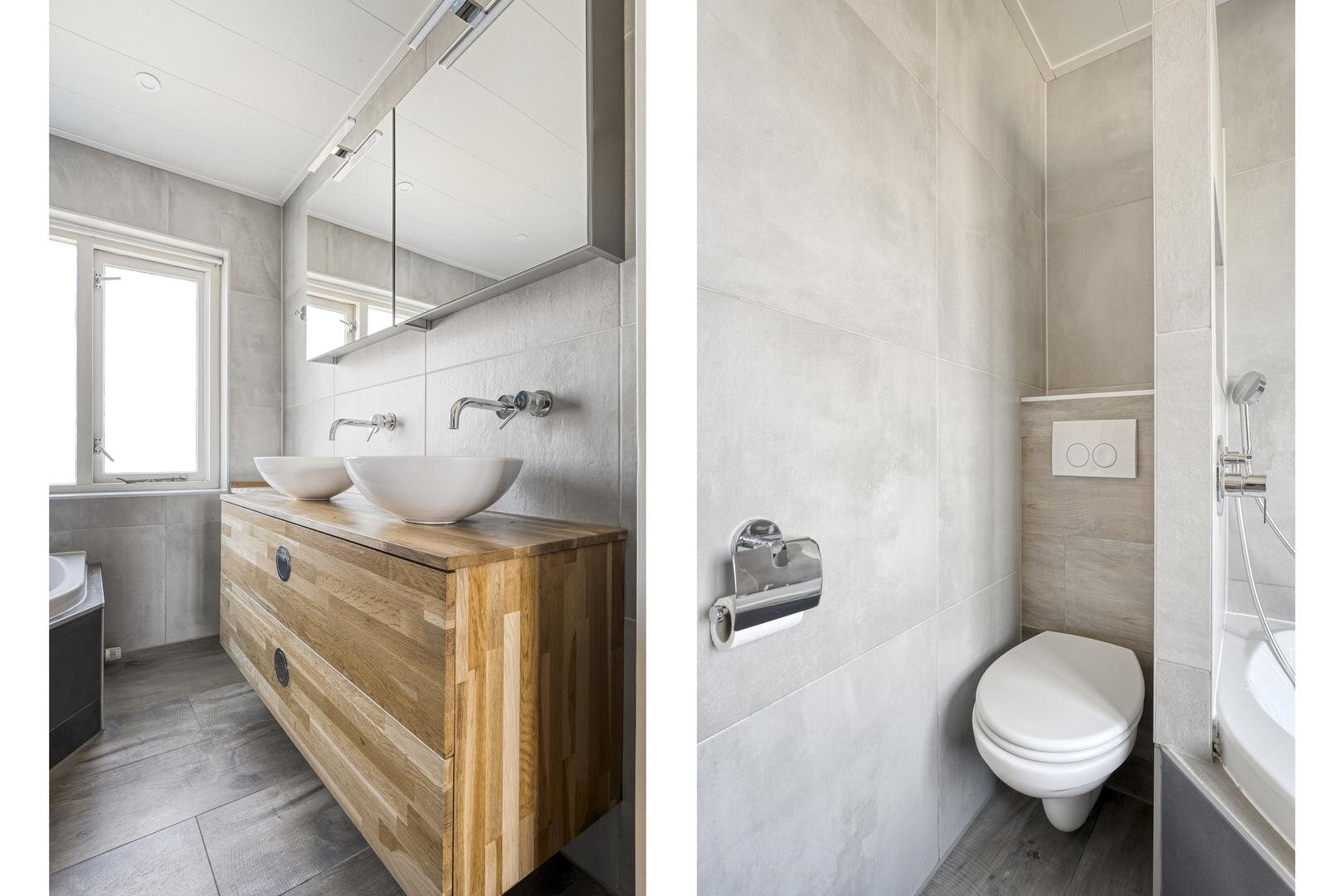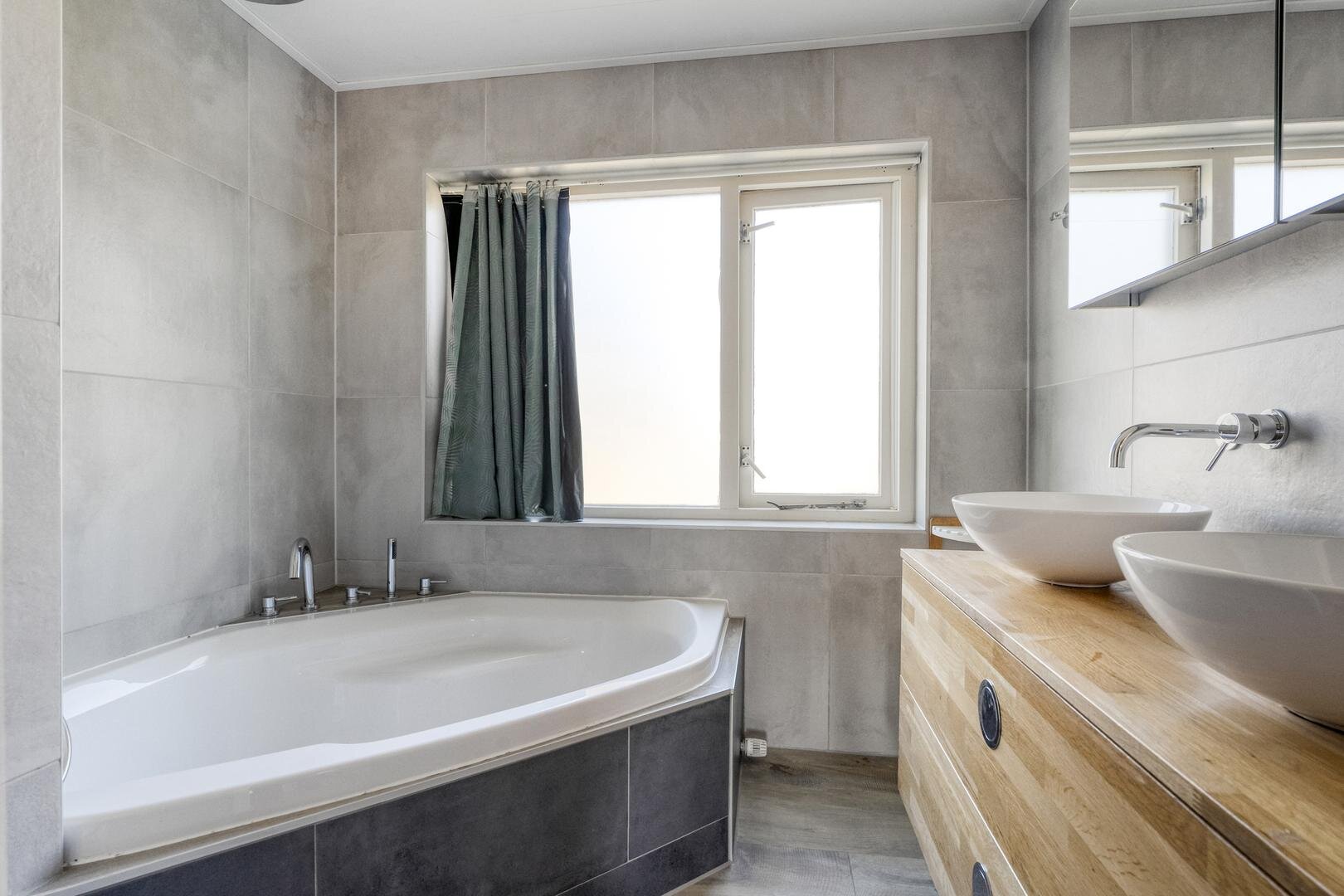 Eerste verdieping: Overloop. Drie slaapkamers waarvan één met balkon en vaste kast. Badkamer voorzien van ligbad, toilet en dubbele wastafel.