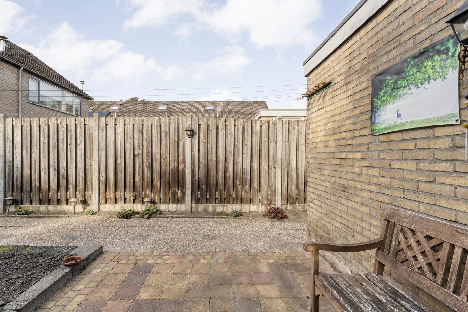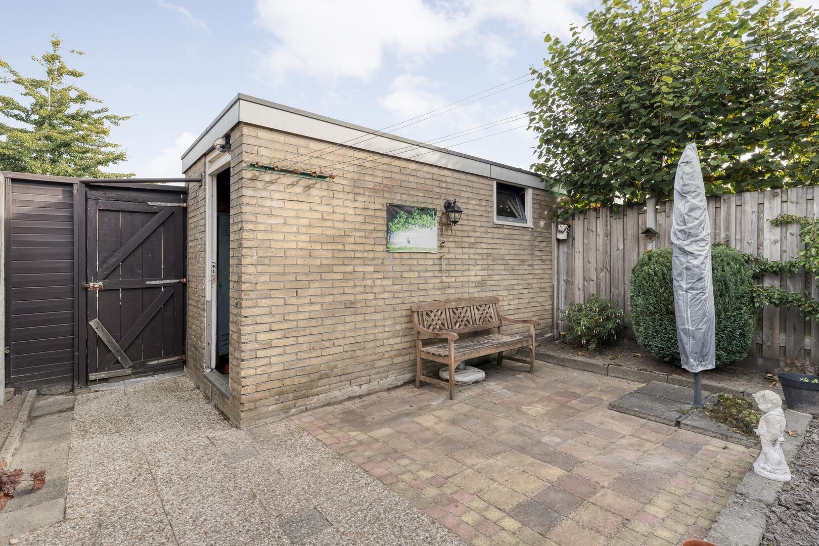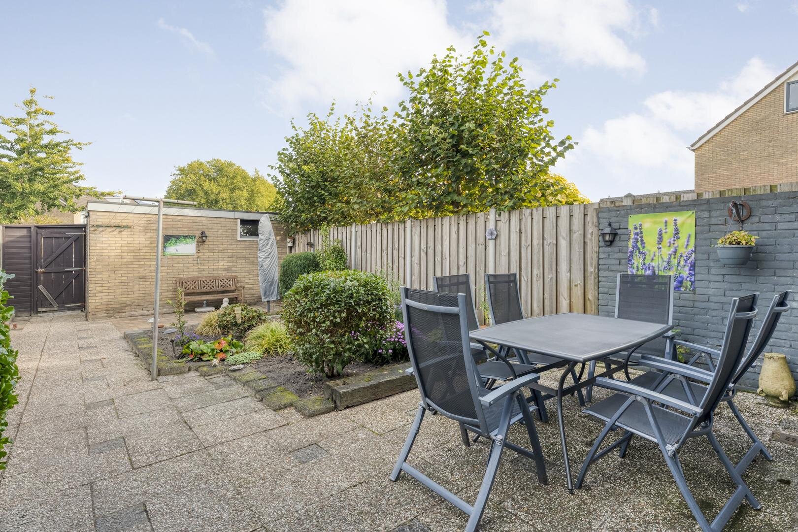 De tuin is een heerlijk verlengstuk van de woning. Met meerdere terrassen is er altijd wel een plek om van de zon of juist van de schaduw te genieten. Achterin de tuin staat een vrijstaande berging die zorgt voor extra opbergruimte voor fietsen of gereedschap, en via de handige achterom bereik je de woning ook gemakkelijk met de fiets.