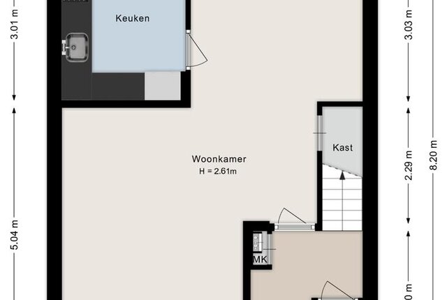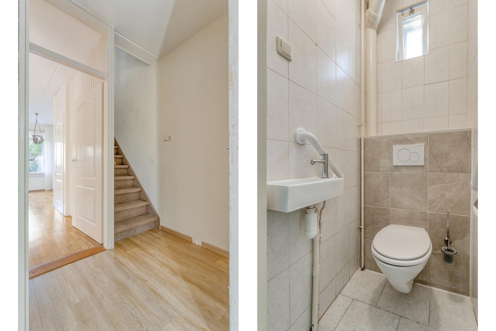 Begane grond: hal/entree met toilet. Woonkamer met parketvloer, trapkast en screen aan de voorzijde van de woning. Dichte keuken voorzien van een 4 pits gastoestel, afzuigkap, vaatwasser, koelkast en combimagnetron.