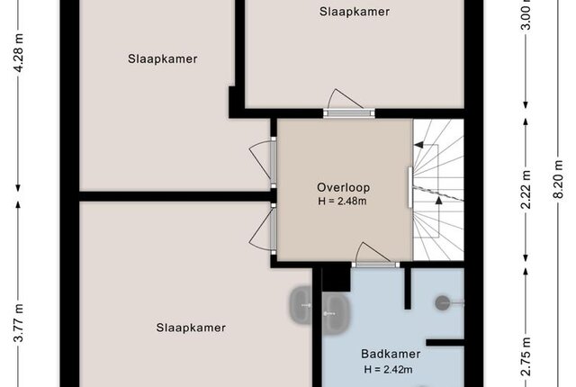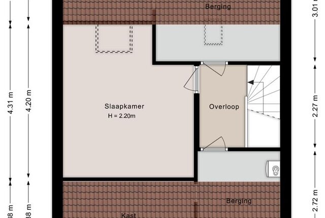 Tweede verdieping: overloop met cv-ketel, berging. Vierde slaapkamer voorzien van een laminaatvloer.