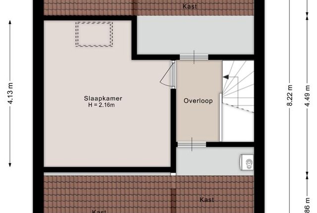 Tweede verdieping: overloop. vierde slaapkamer. Bergruimte.