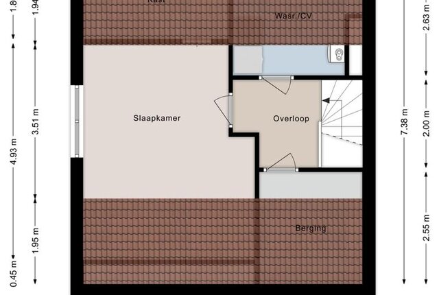 Tweede verdieping: Overloop. CV-ruimte en bergruimte. Vierde slaapkamer.