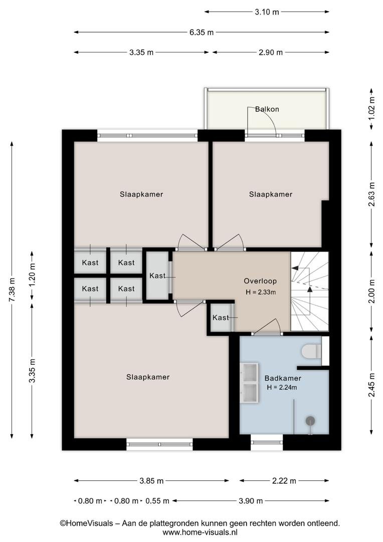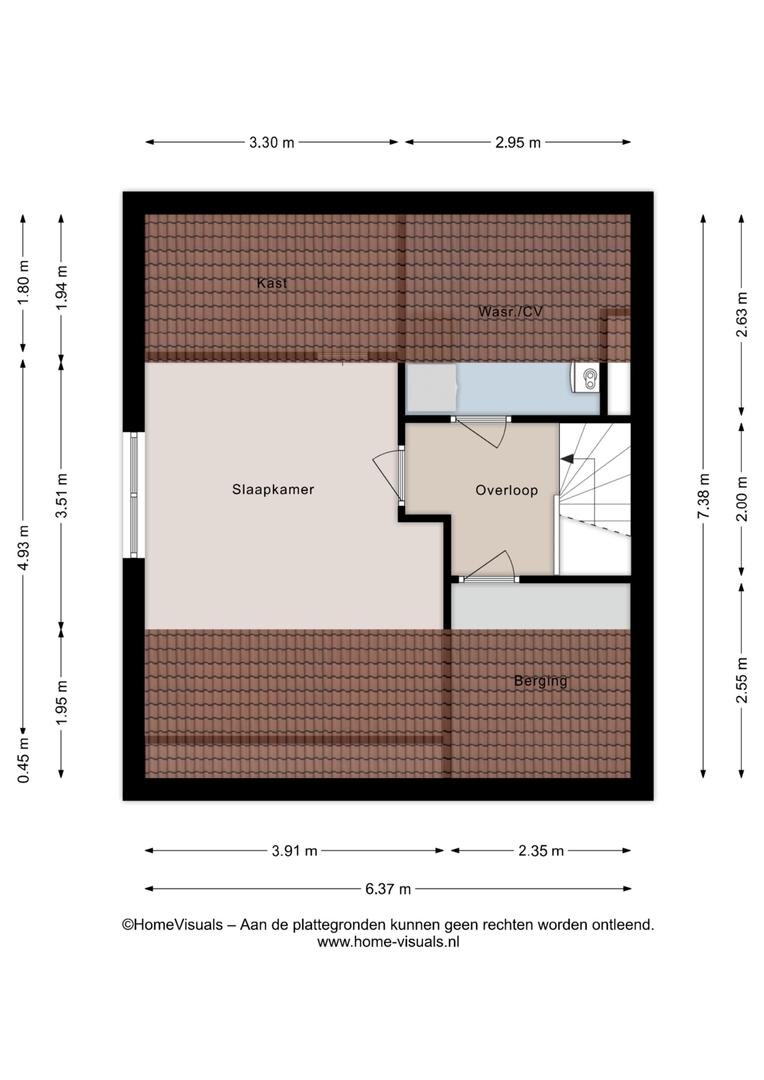 Tweede verdieping: Overloop. CV-ruimte en bergruimte. Vierde slaapkamer.