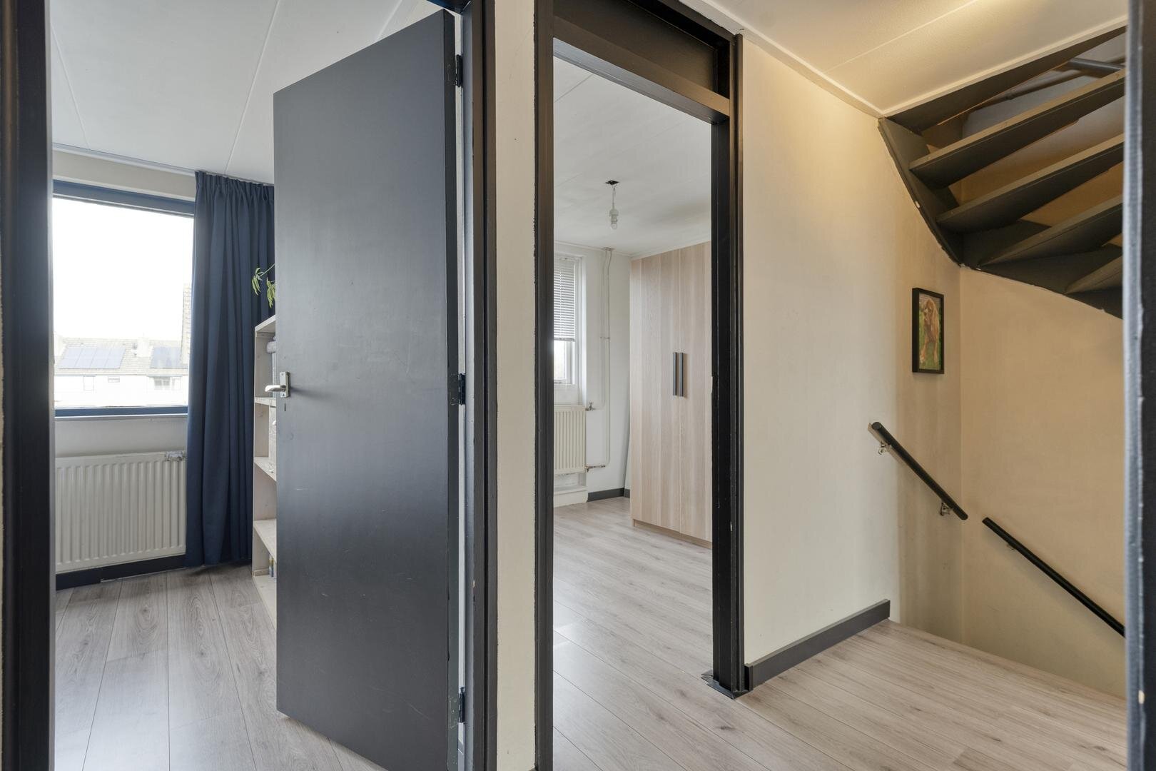 Op de eerste verdieping bevinden zich drie slaapkamers, alle voorzien van een laminaatvloer, waarbij één slaapkamer beschikt over een balkon. Via een vaste trap bereikt u de tweede verdieping met overloop, opstelplaats voor de cv-ketel en wasruimte en de vierde slaapkamer met knieschotberging.