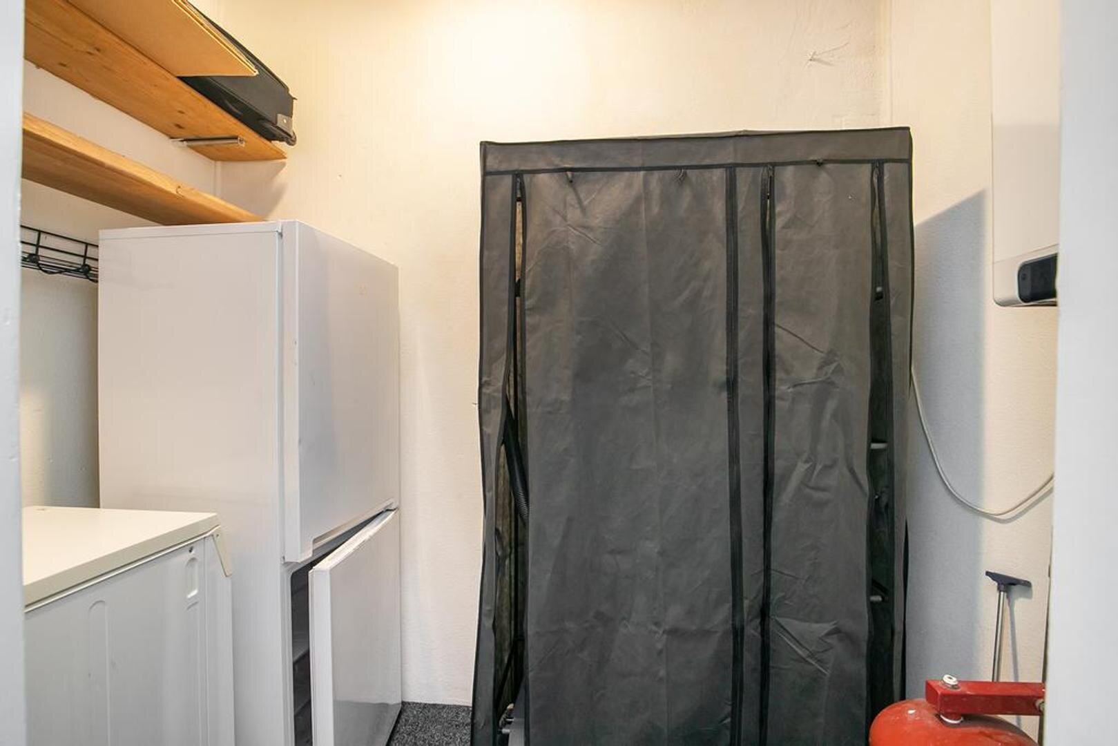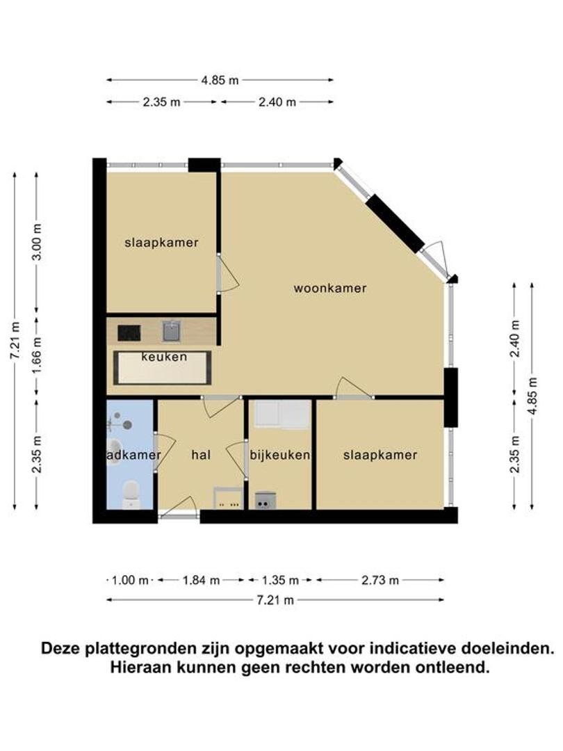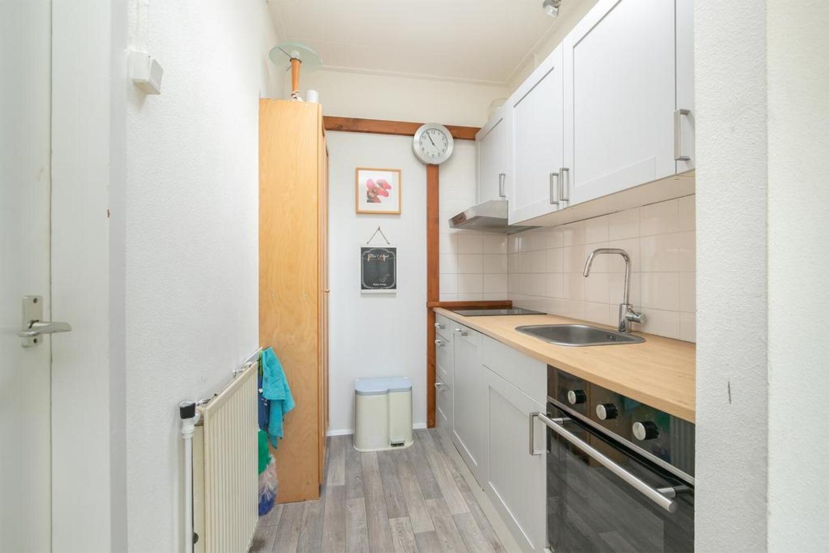 Hal/entree met meterkast. Bijkeuken met de cv-ketel en wasmachineaansluiting. Badkamer met douche, wastafel en toilet. Woonkamer met deur naar het terras. Halfopen keuken met keukenblok. Twee slaapkamers.