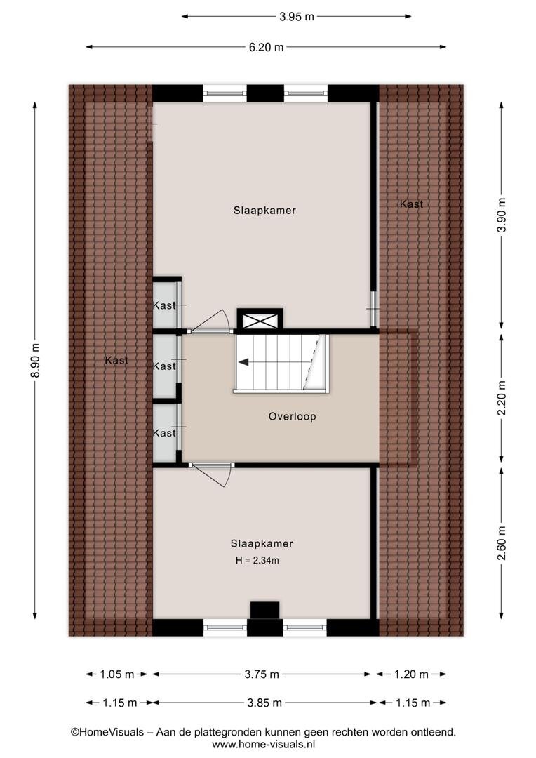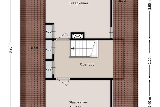 Eerste verdieping: overloop. Twee slaapkamers