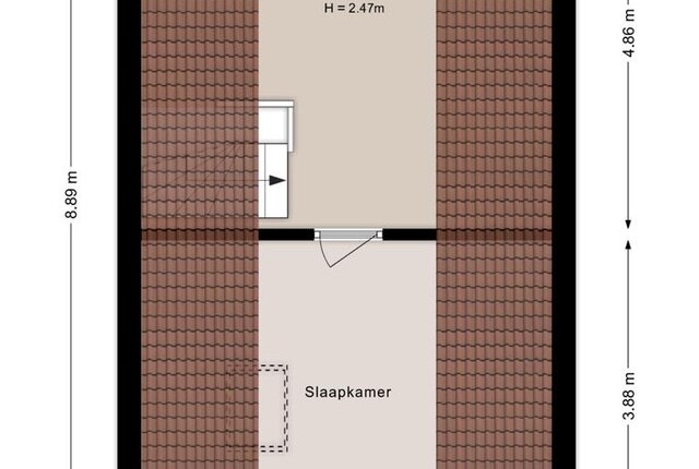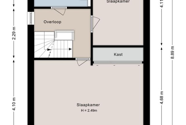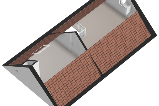 Tweede verdieping: Overloop. Derde, ruime slaapkamer en zolderberging.