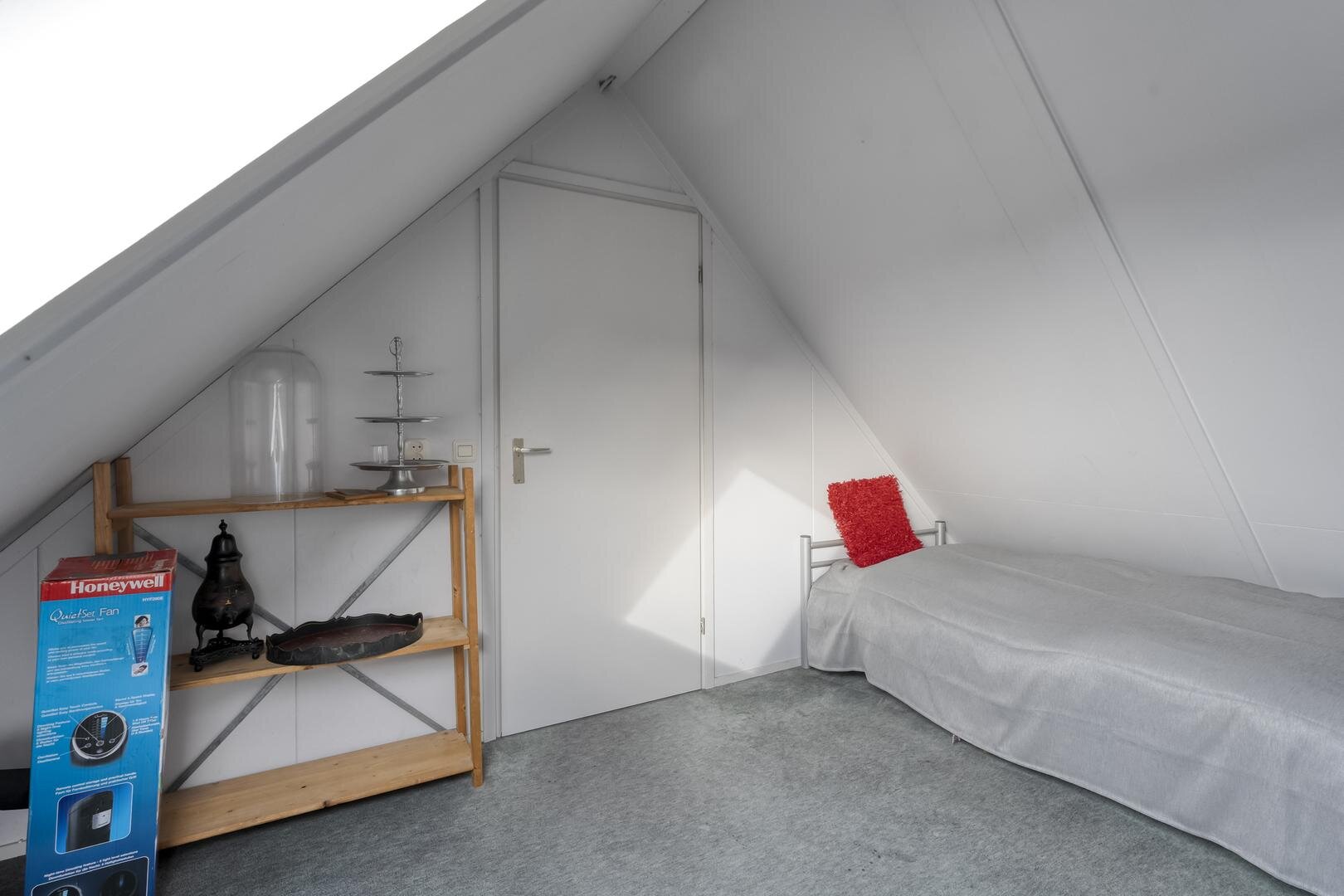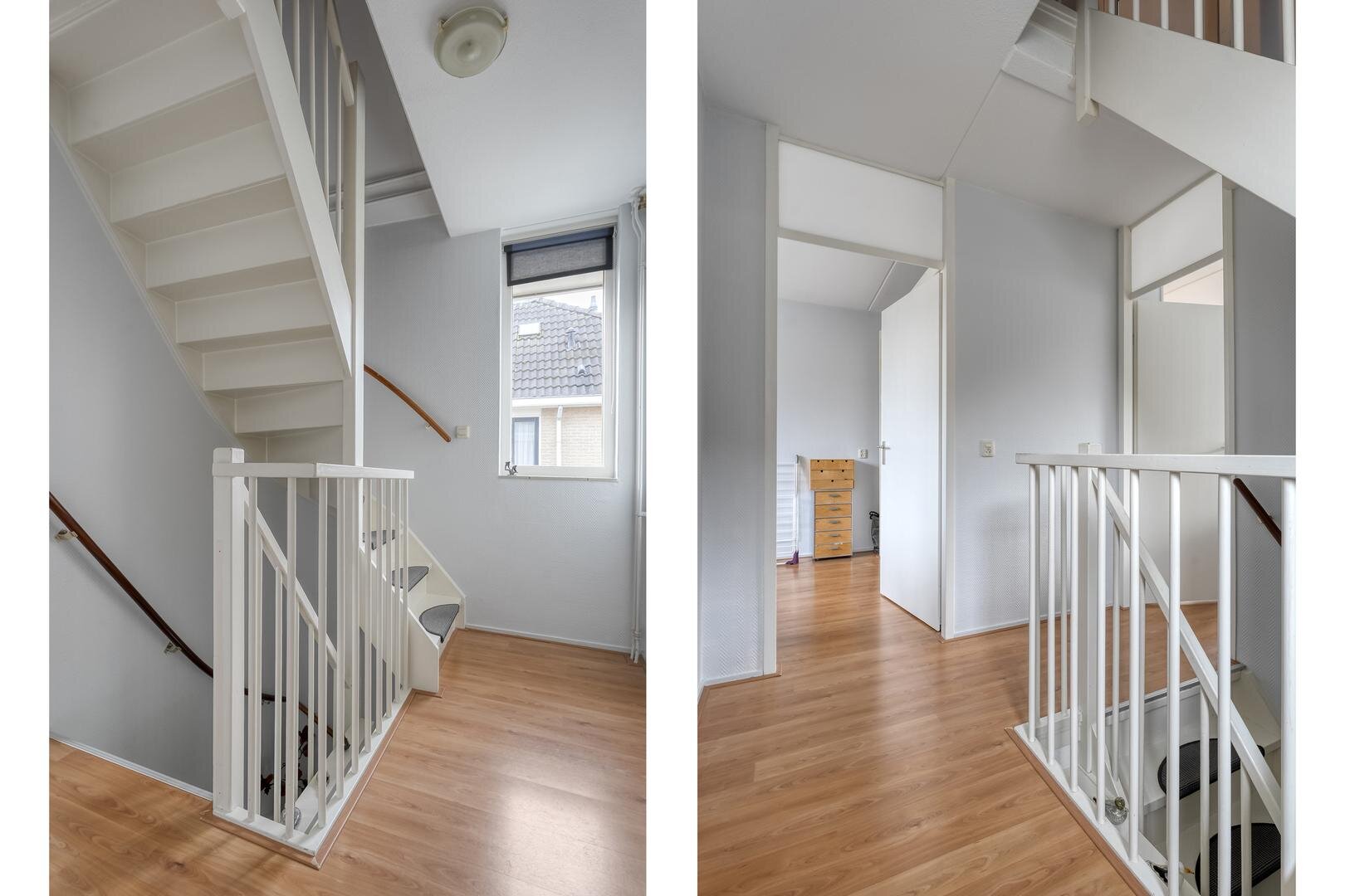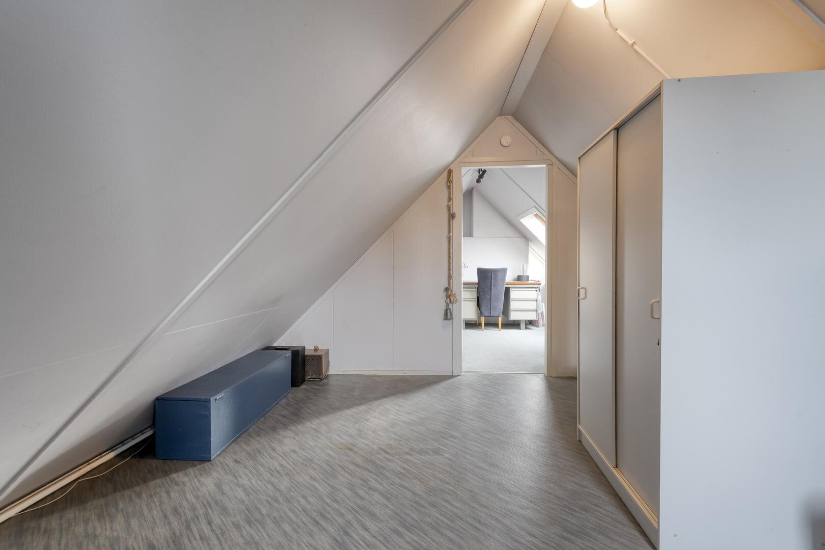 Tweede verdieping: Overloop. Derde, ruime slaapkamer en zolderberging.