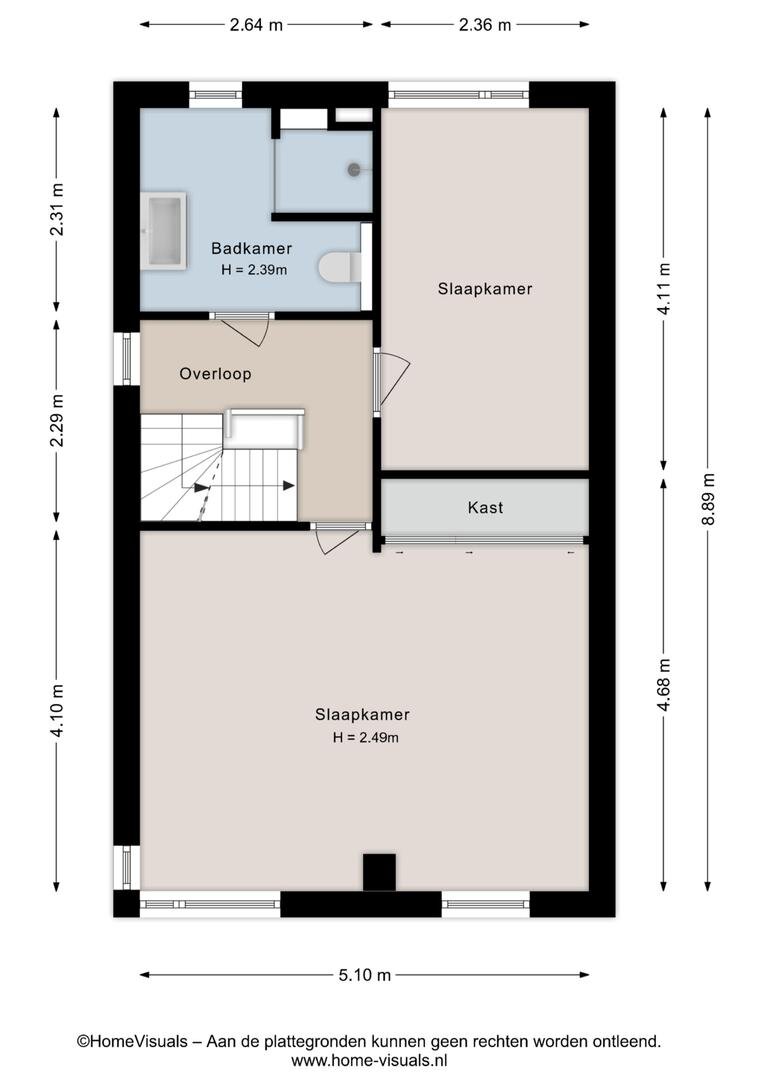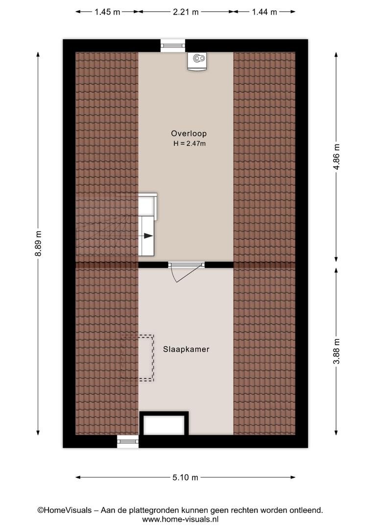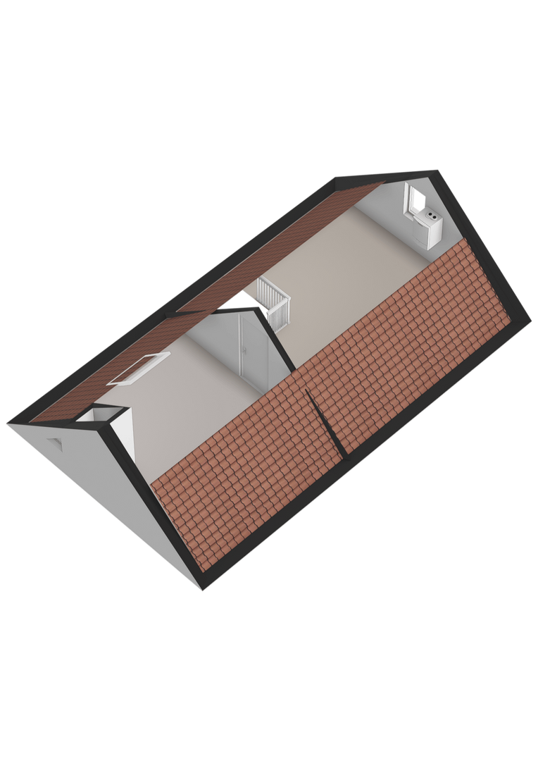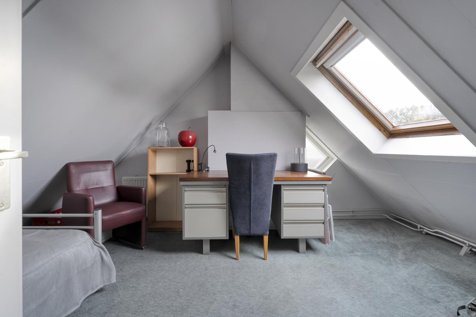 Tweede verdieping: Overloop. Derde, ruime slaapkamer en zolderberging.