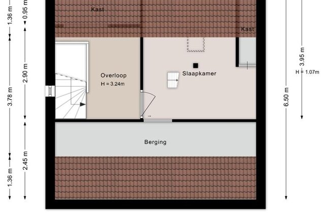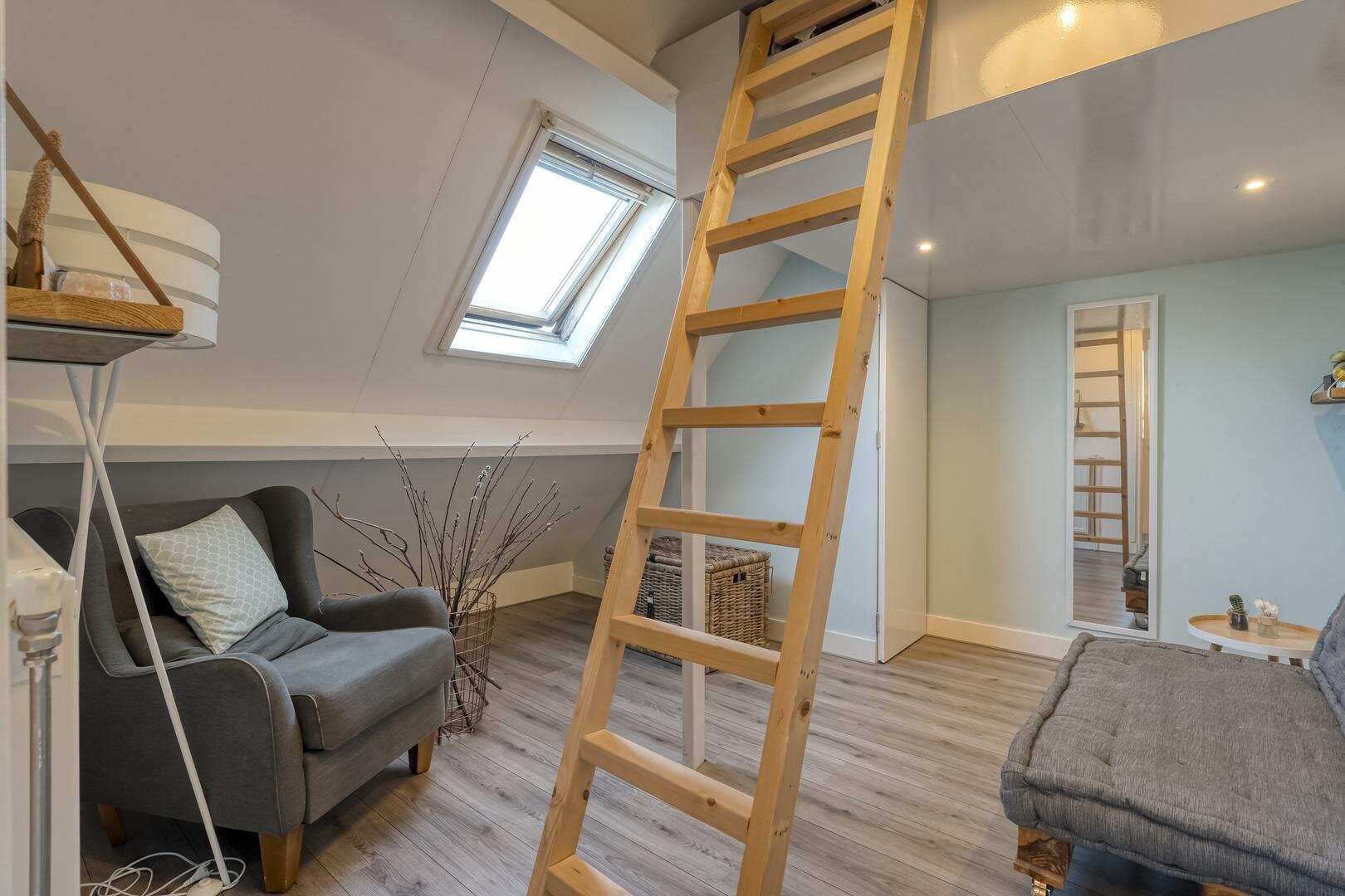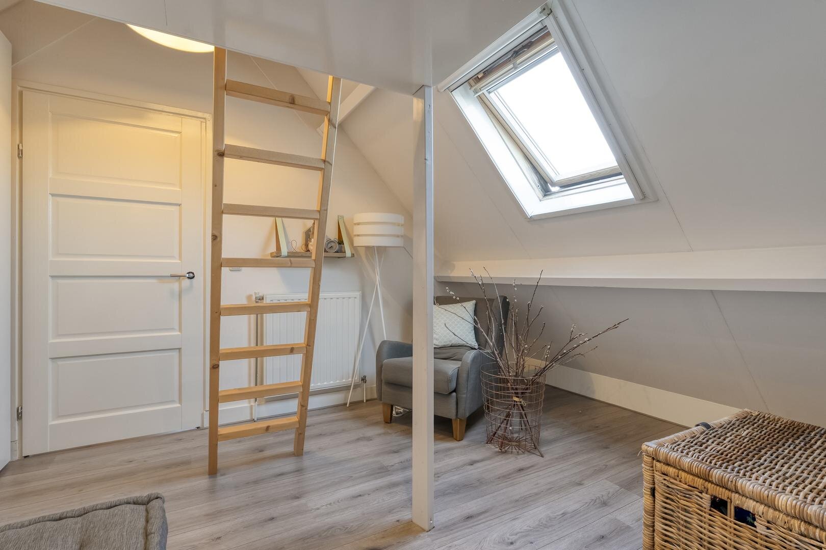 Via een vaste trap bereik je de vierde slaapkamer en een handige zolderberging.