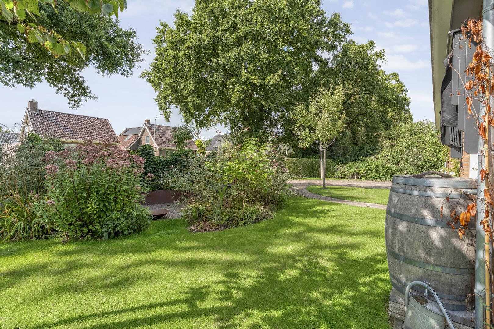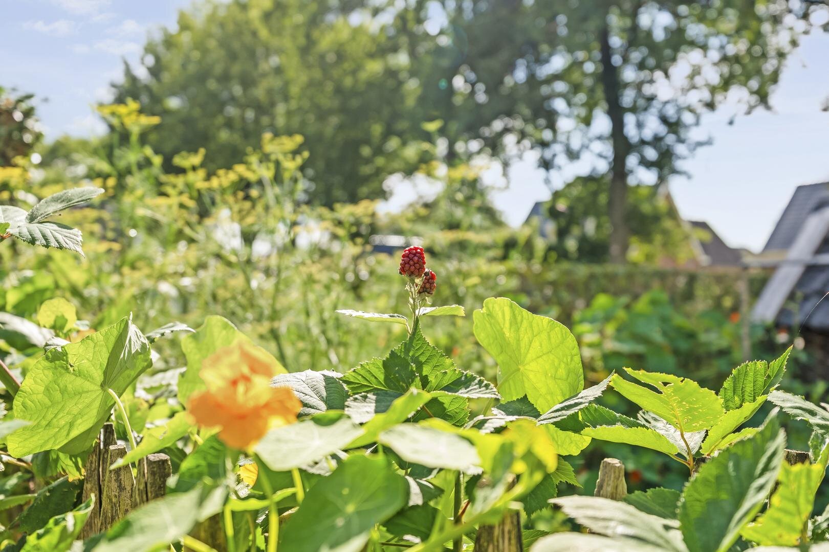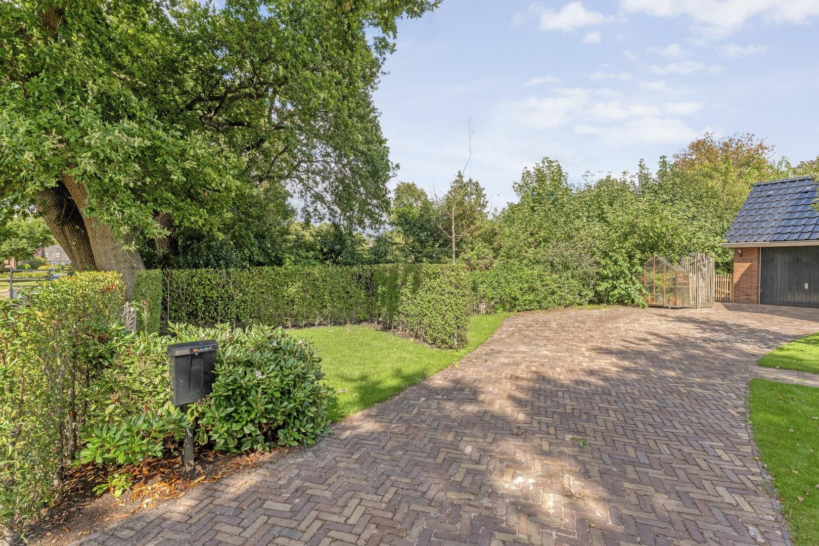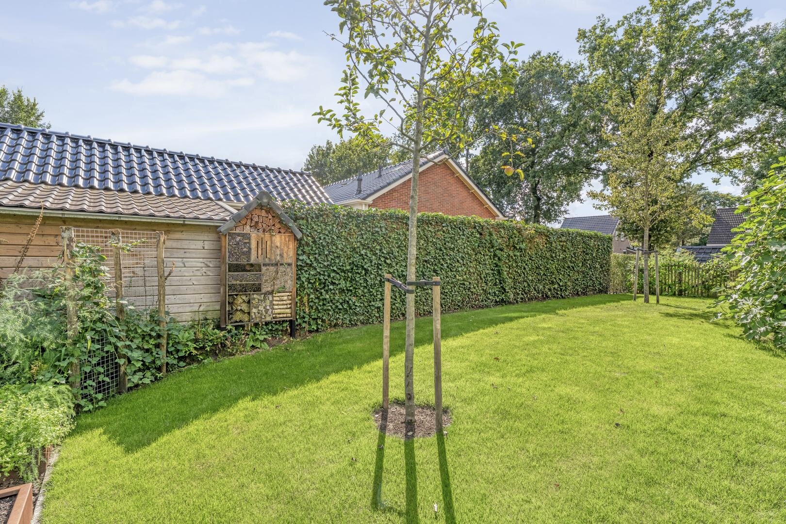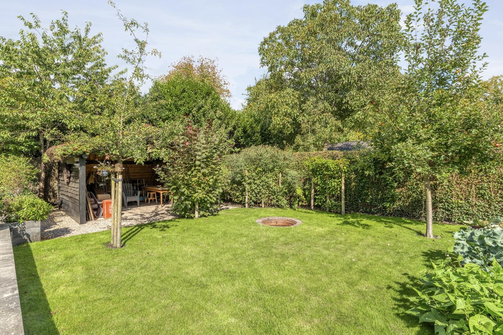 De fraai aangelegde tuin vormt een waar verlengstuk van de woning. Hier vindt u meerdere terrassen, een overkapping, een kas en zelfs een insectenhotel. Dankzij de bron en het computergestuurde beregeningssysteem blijft de tuin altijd in optimale conditie. Ook aan bergruimte is gedacht, met een aangebouwde garage en een vrijstaand tuinschuurtje.