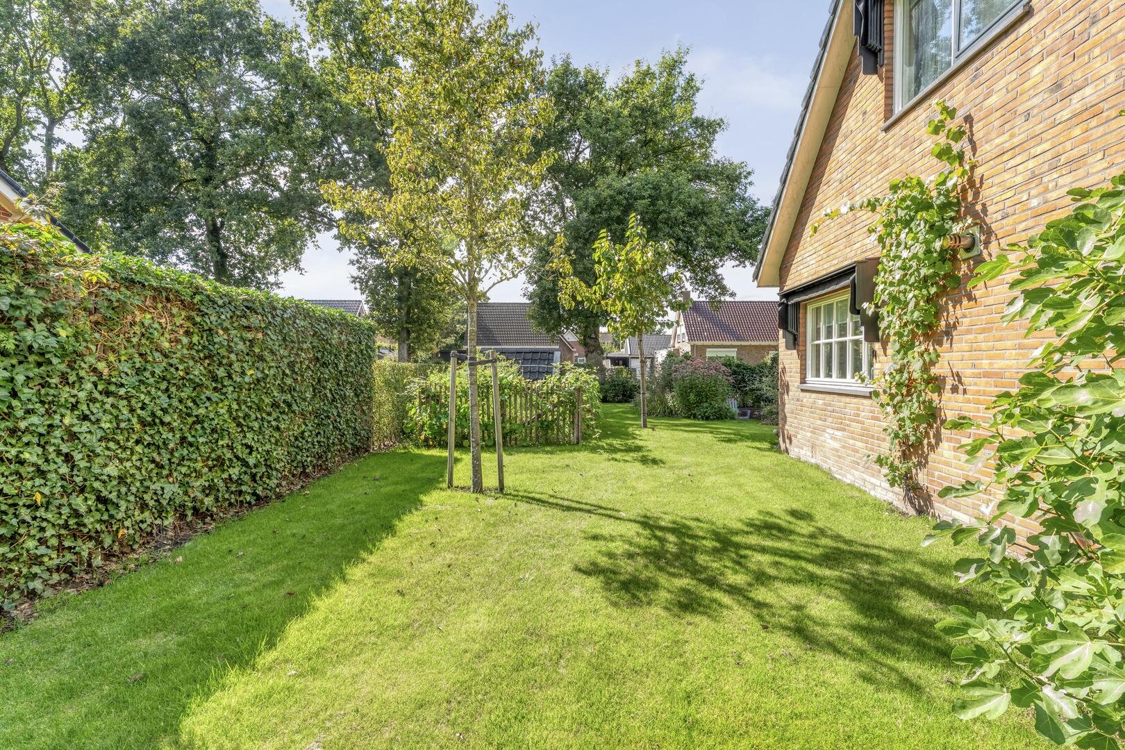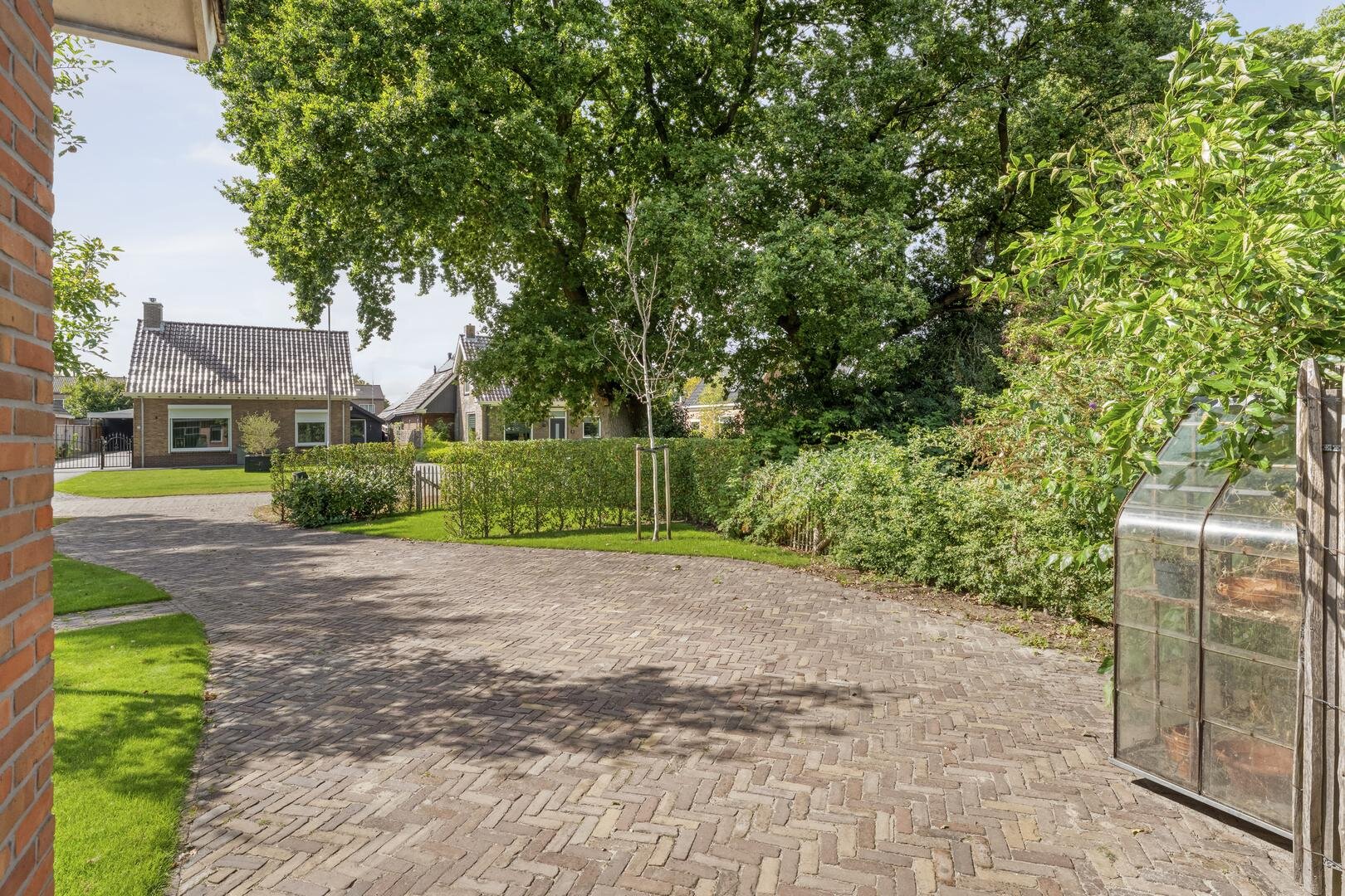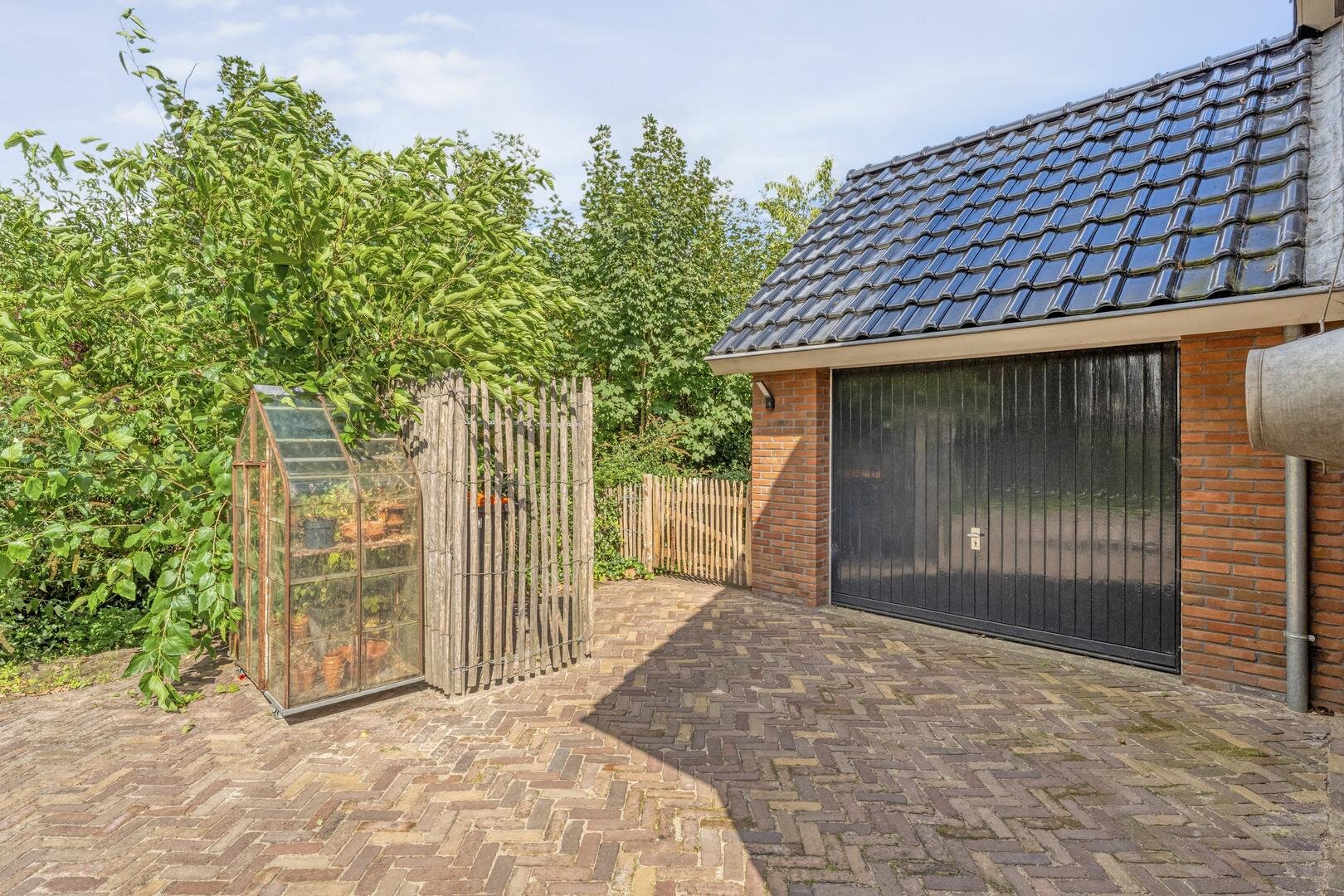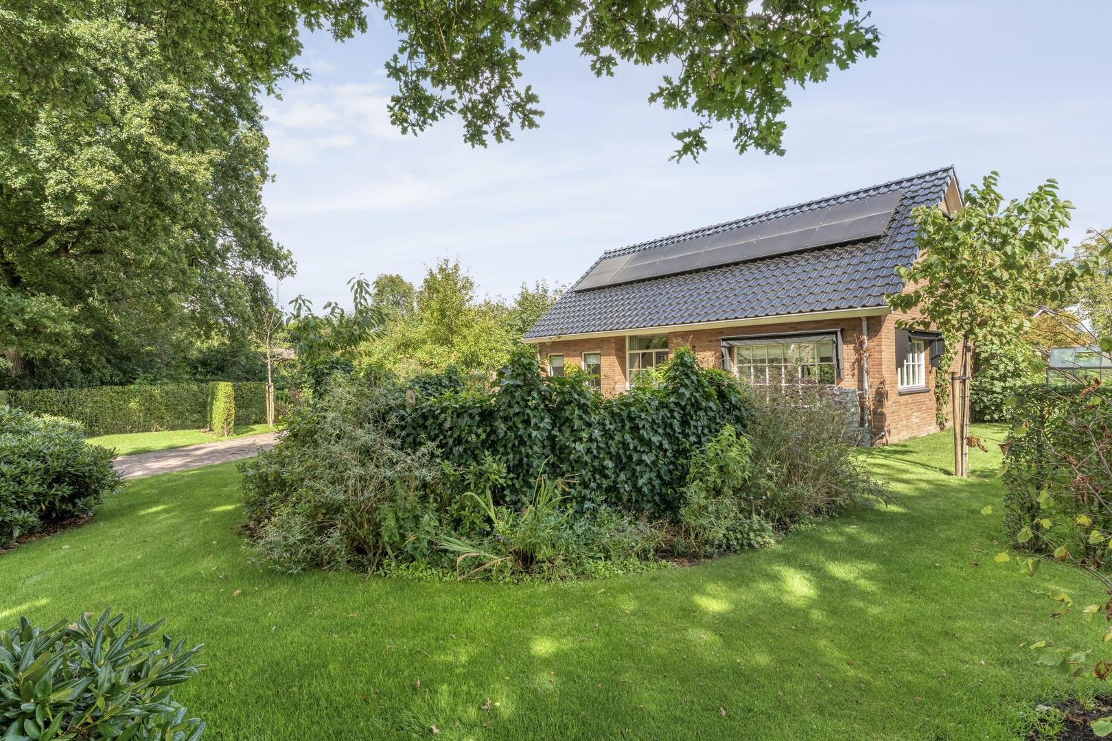De fraai aangelegde tuin vormt een waar verlengstuk van de woning. Hier vindt u meerdere terrassen, een overkapping, een kas en zelfs een insectenhotel. Dankzij de bron en het computergestuurde beregeningssysteem blijft de tuin altijd in optimale conditie. Ook aan bergruimte is gedacht, met een aangebouwde garage en een vrijstaand tuinschuurtje.