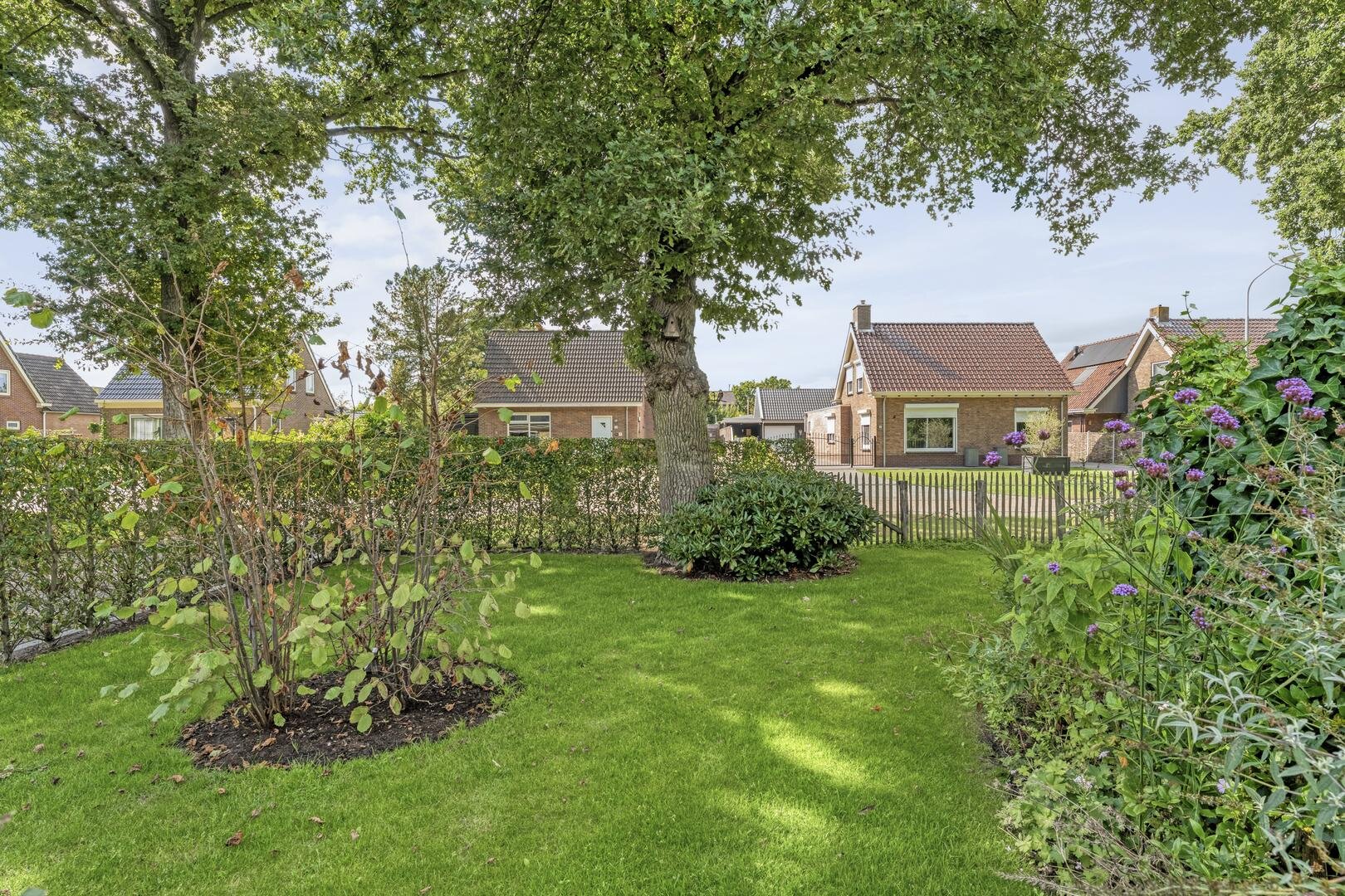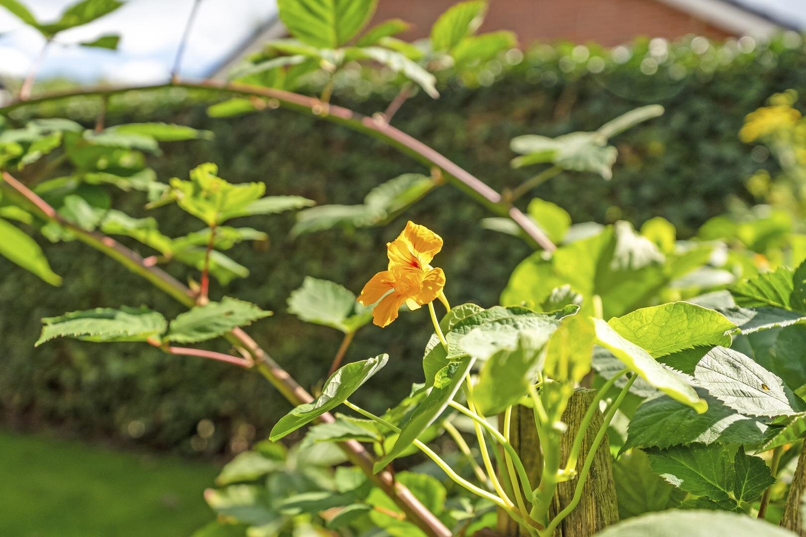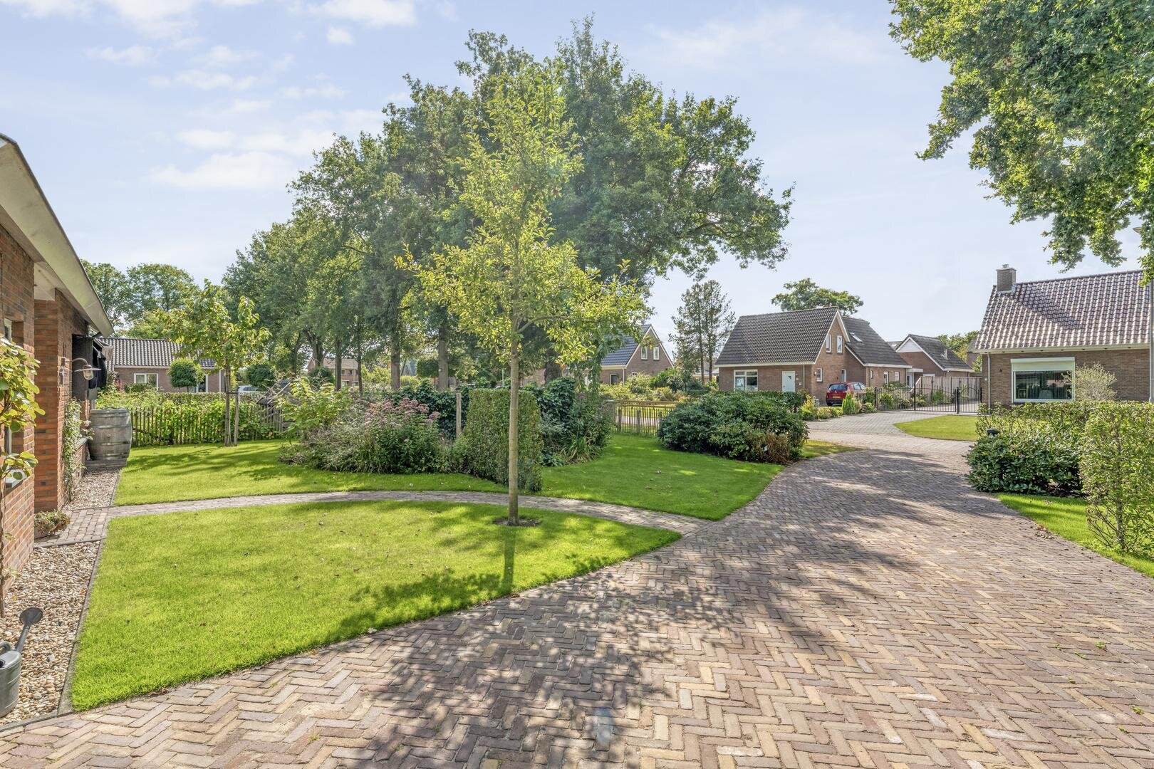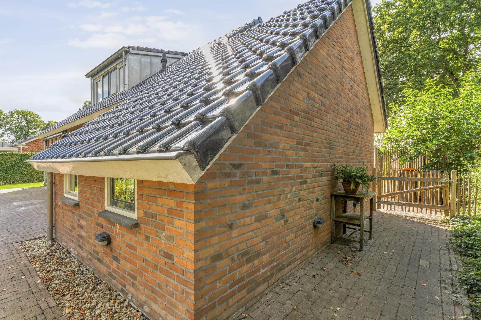 De fraai aangelegde tuin vormt een waar verlengstuk van de woning. Hier vindt u meerdere terrassen, een overkapping, een kas en zelfs een insectenhotel. Dankzij de bron en het computergestuurde beregeningssysteem blijft de tuin altijd in optimale conditie. Ook aan bergruimte is gedacht, met een aangebouwde garage en een vrijstaand tuinschuurtje.