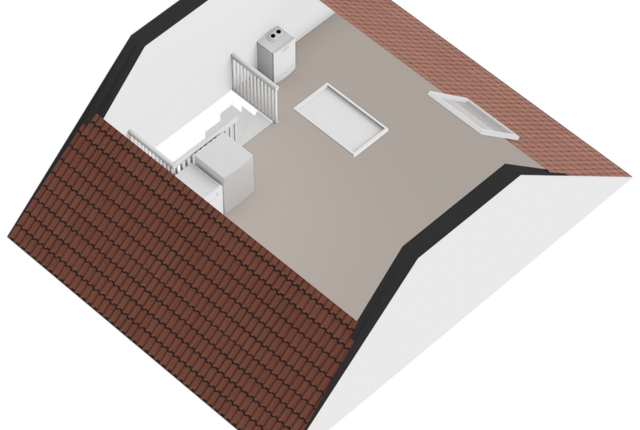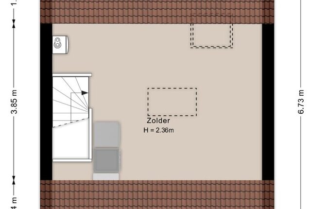 Zolder met wasmachineaansluiting en vliering.
