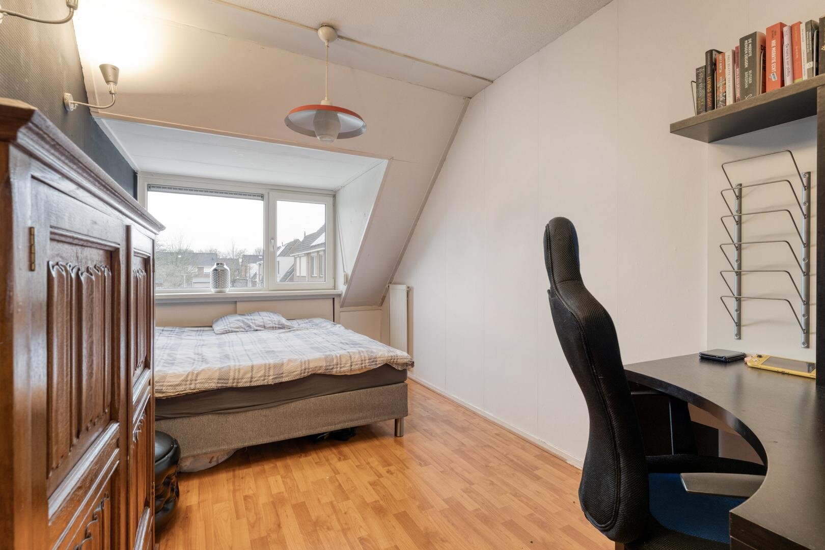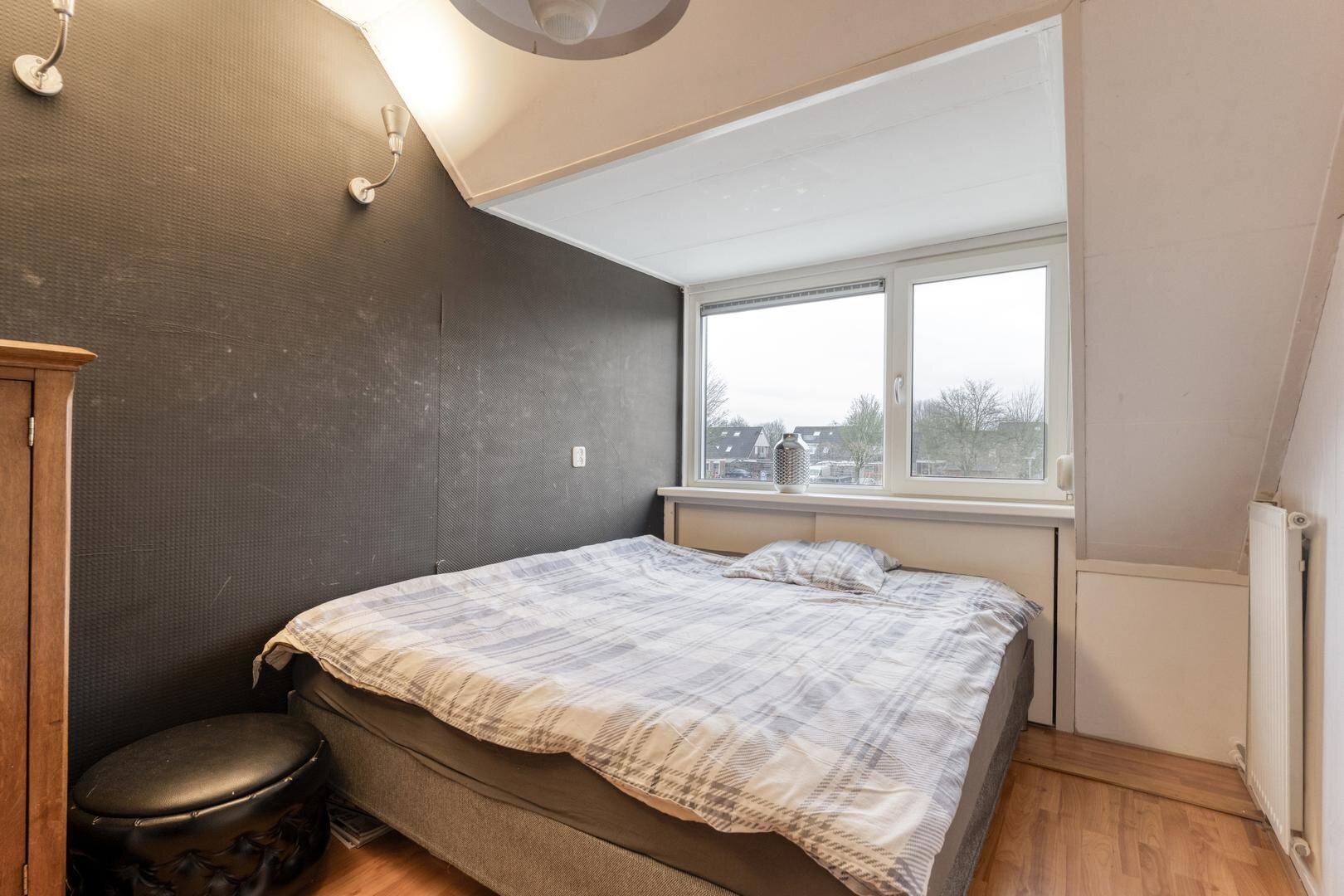 dubbelglas. Op de eerste verdieping bevinden zich drie goed bemeten slaapkamers en via een vaste trap is de zolder bereikbaar, waar eenvoudig een extra slaapkamer, werkruimte of hobbykamer kan worden gerealiseerd.
