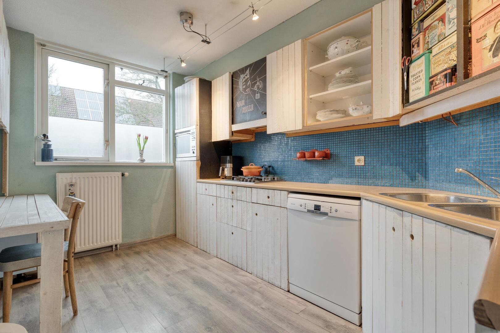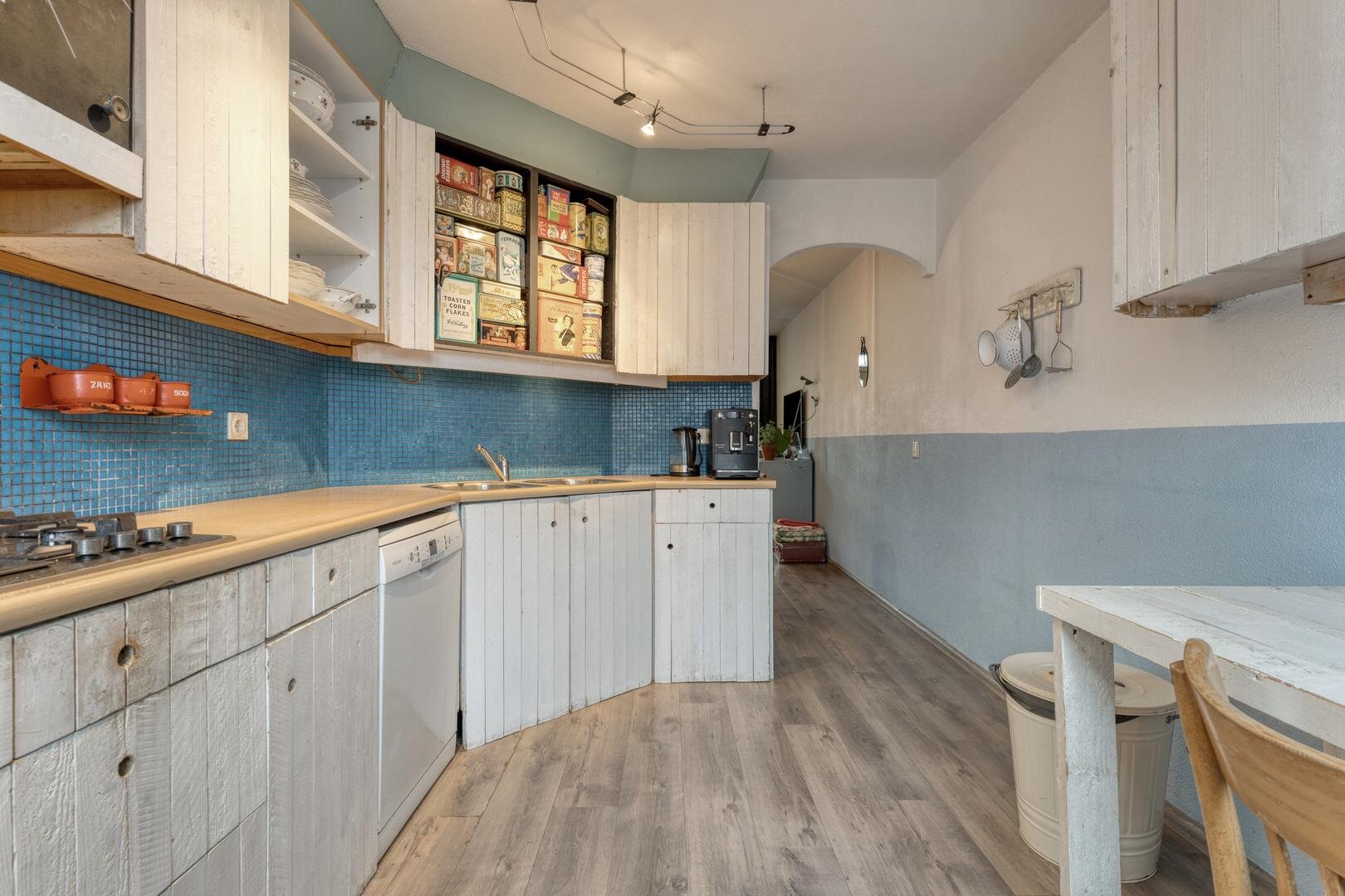 Half open keuken voorzien van 4-pits gasfornuis.
