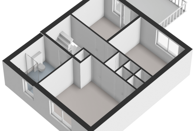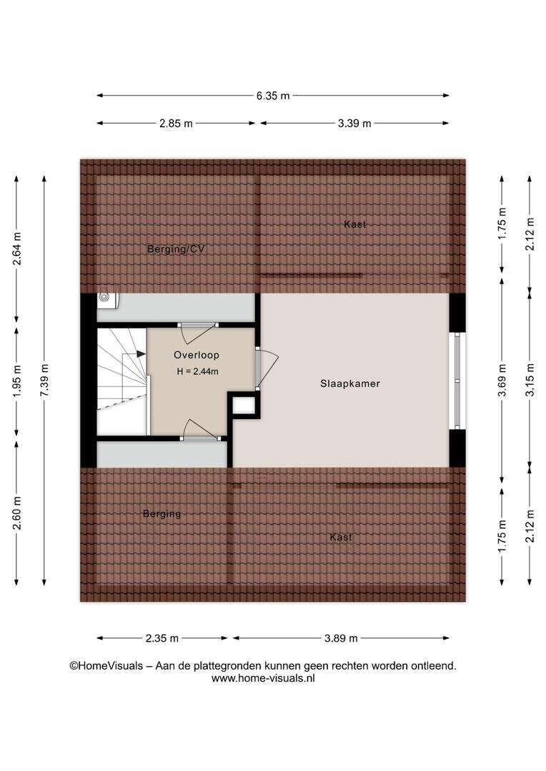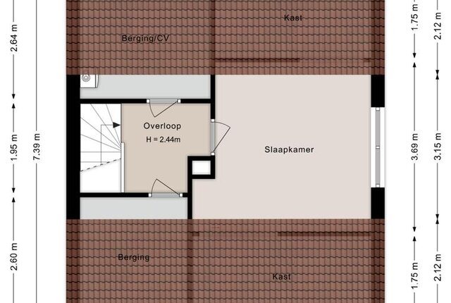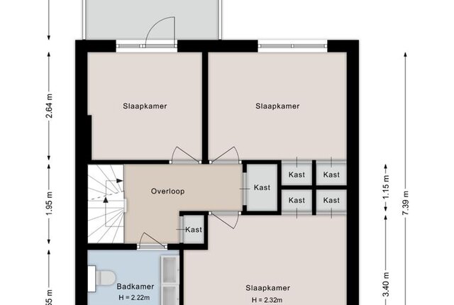 Tweede verdieping: Overloop met bergruimtes en airco. Vierde slaapkamer met vaste kasten.