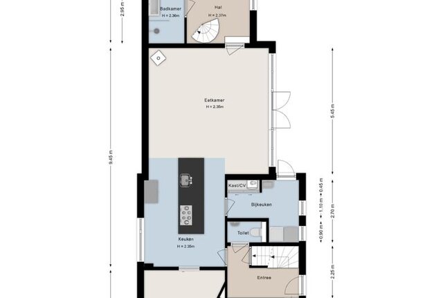 Begane grond: Hal/entree met toilet en vaste trap naar 1e verdieping. Woonkamer met veel lichtinval voorzien van een eikenvloer en een sierhaard. Woonkeuken met gaskookplaat, afzuigkap, vaatwasser, oven en koelkast. Bijkeuken voorzien van wasmachineaansluiting. Tussenhal voorzien van wenteltrap naar 3e slaapkamer. Badkamer voorzien van vloerverwarming, inloopdouche, toilet en wastafelmeubel. Slaapkamer.