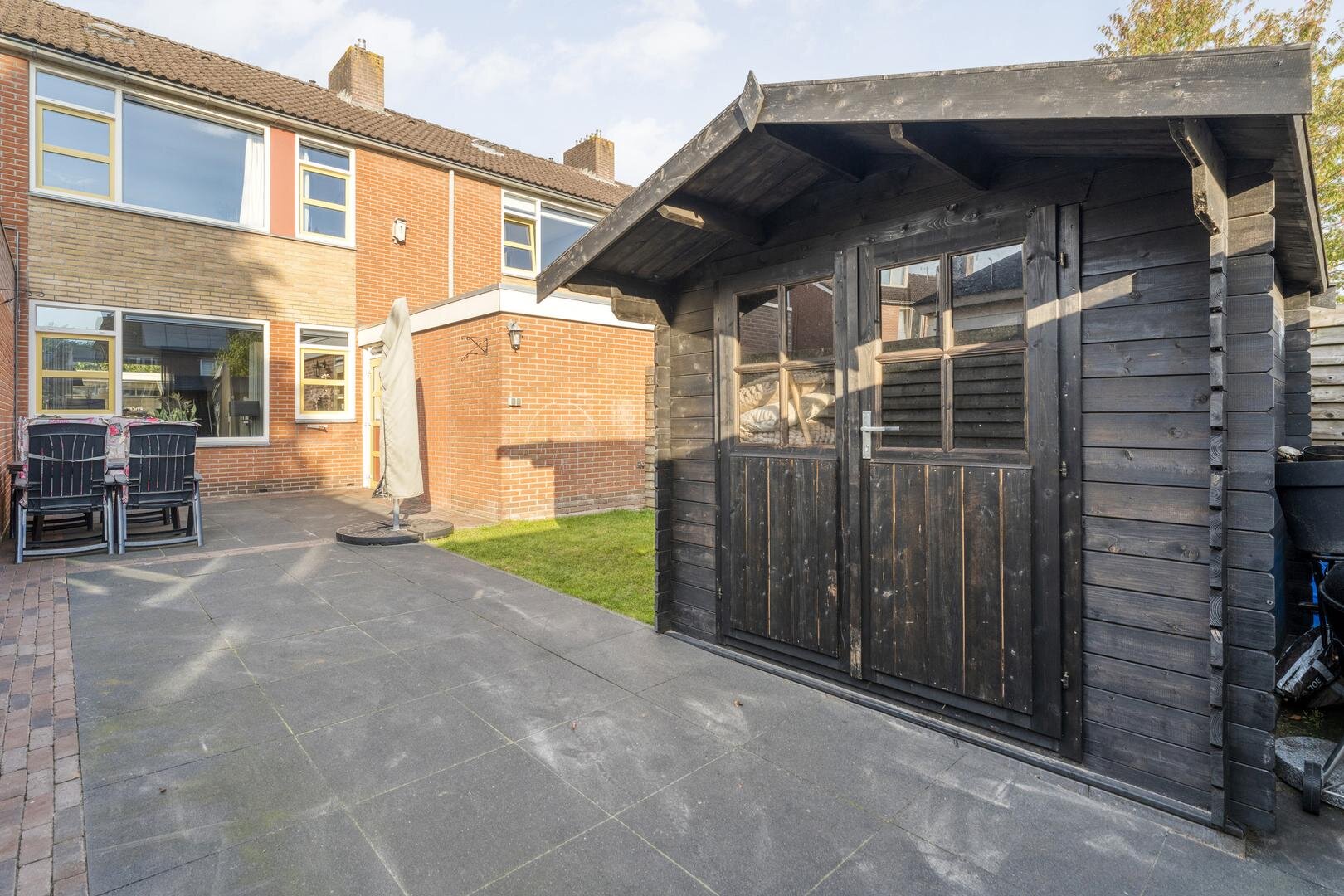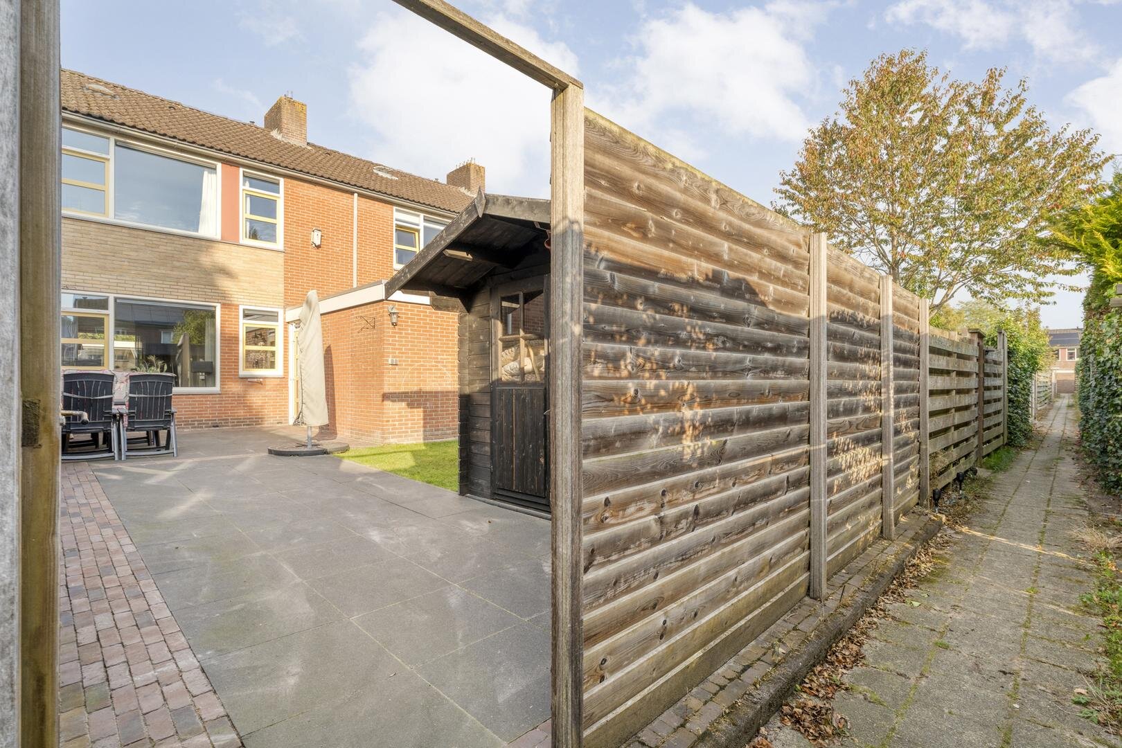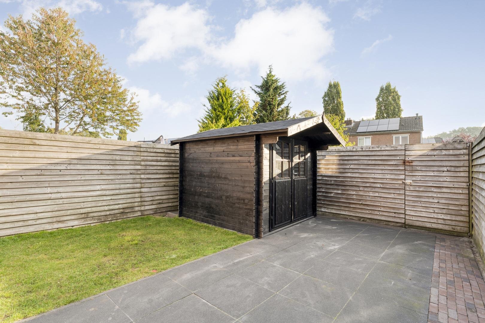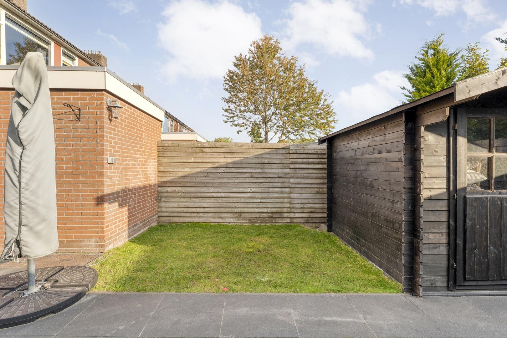 - houten tuinhuis in 2023 geplaatst;