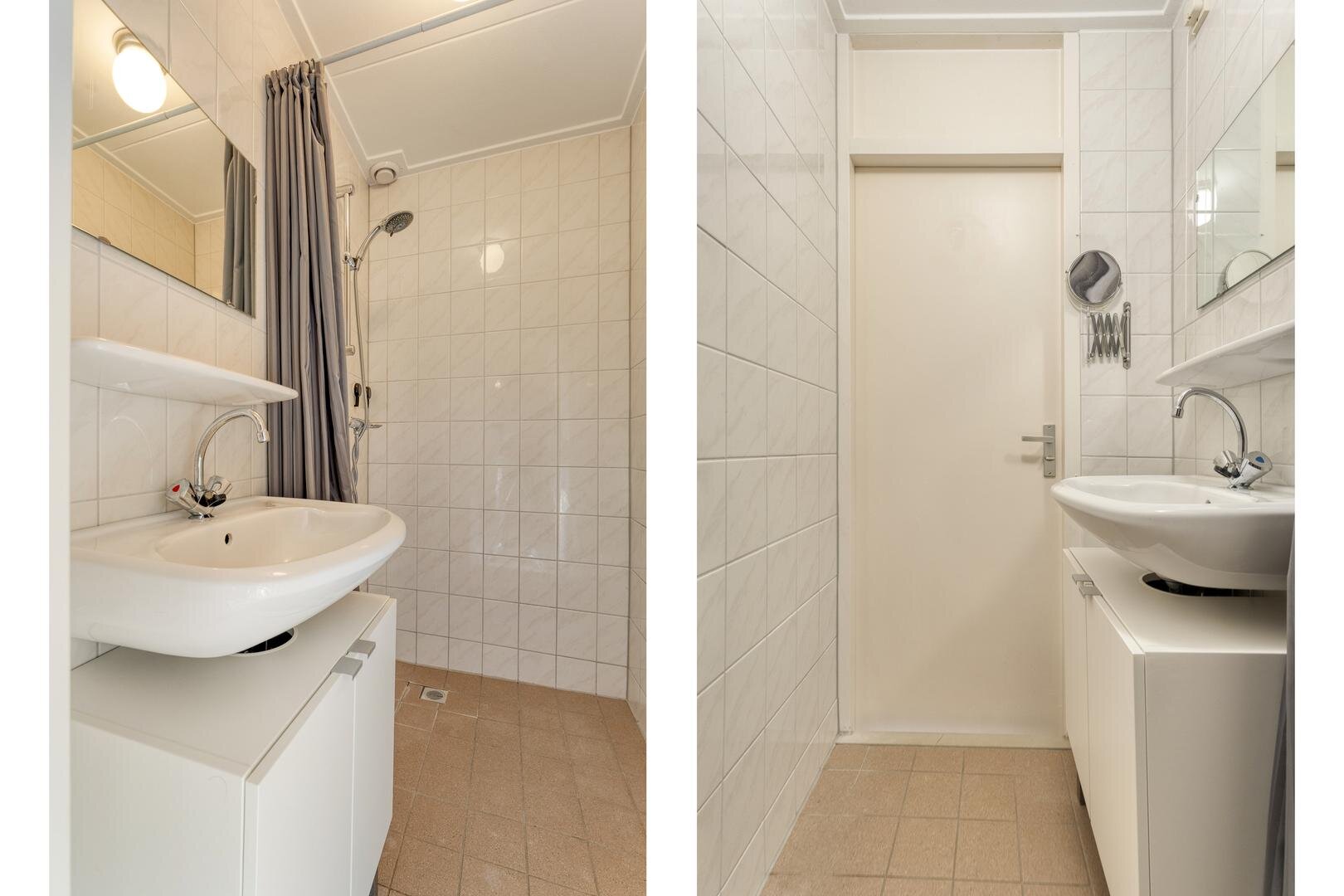 Eerste verdieping: Vier slaapkamers, allen voorzien van een laminaatvloer en één van airconditioning. Overloop. Badkamer met douche en wastafel. Via vlizotrap naar..