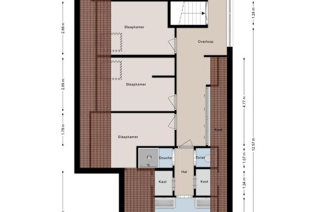 Tweede verdieping: Via vaste trap naar de geheel begaanbare zolderberging. (12 x 2,30 m en nokhoogte 1.50)