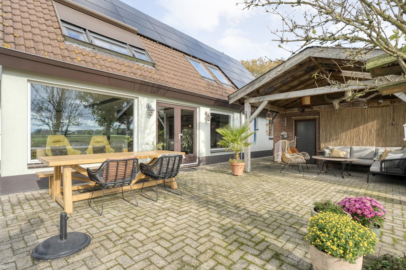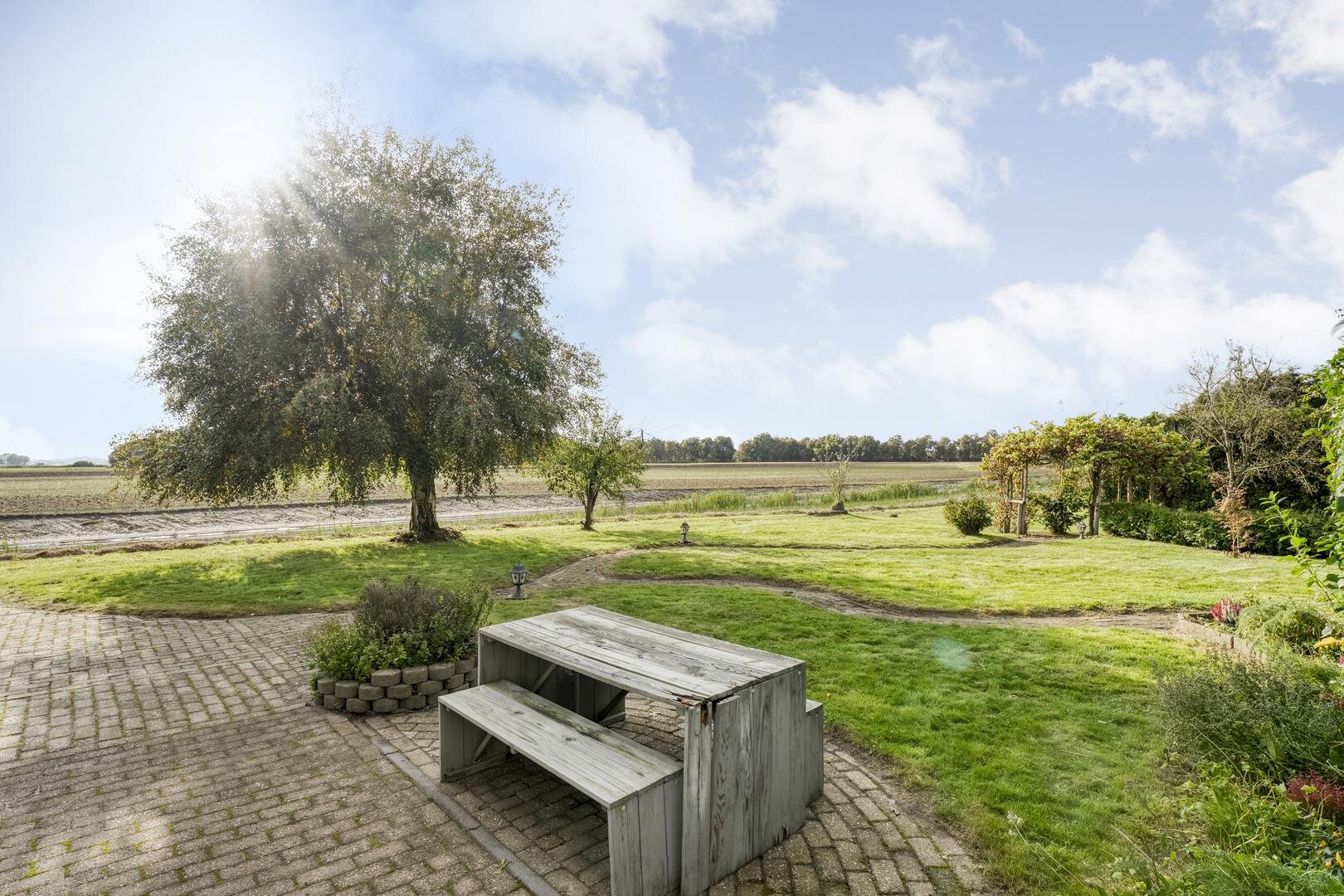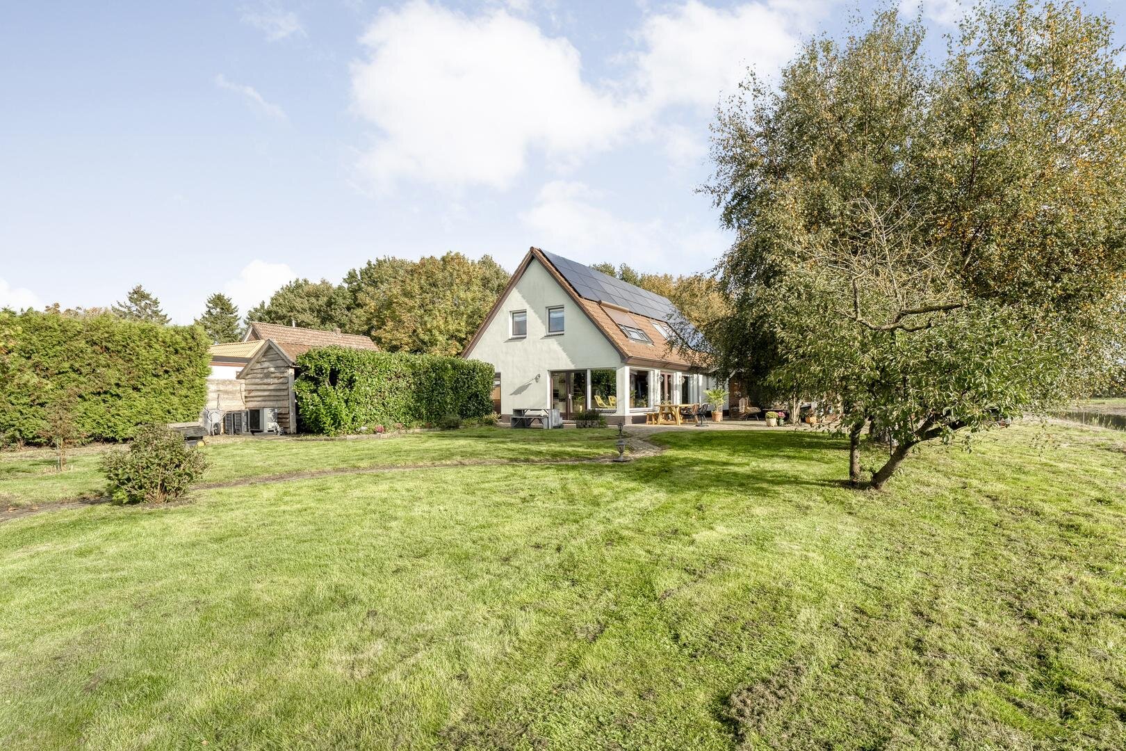 Het perceel van 2970 m² biedt volop ruimte om te genieten van het buitenleven. Rondom de woning liggen verschillende zitjes waar u in alle rust kunt genieten van het uitzicht over de landerijen. Daarnaast is er een ruime schuur van 8 bij 4,75 meter met zolder en overkapping, een carport en een separate berging in de tuin voor extra opslagruimte.