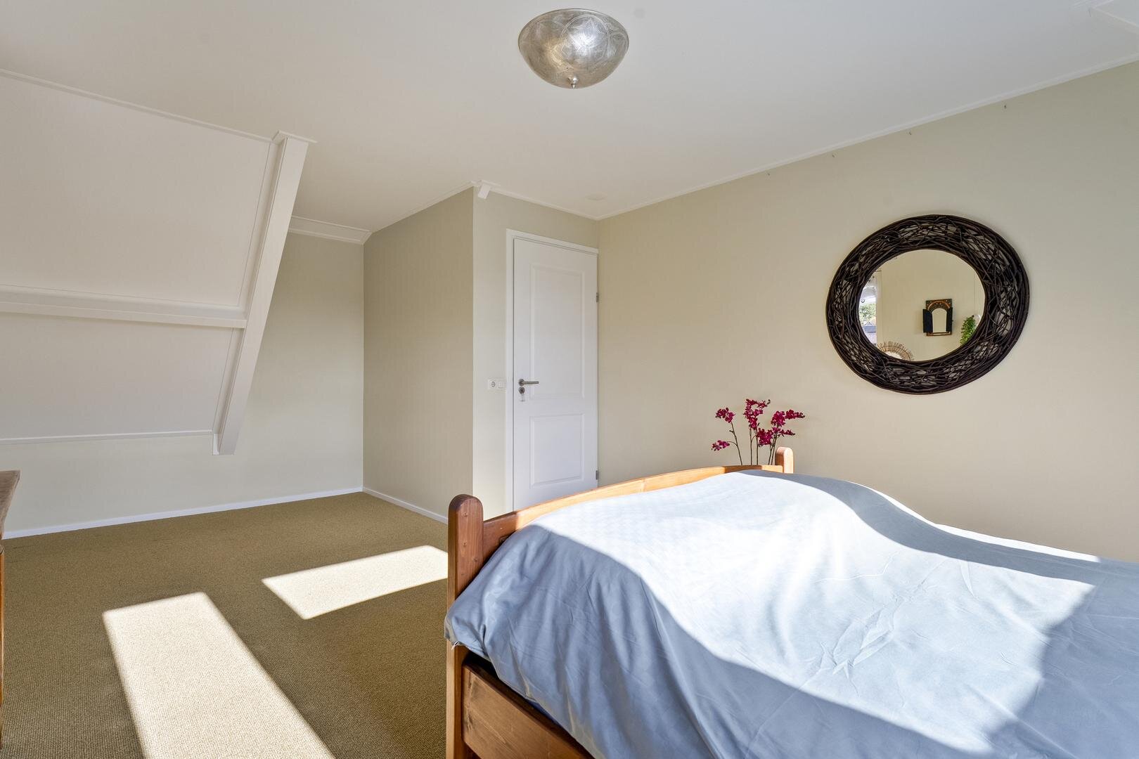 Tweede verdieping: Via vaste trap naar de geheel begaanbare zolderberging. (12 x 2,30 m en nokhoogte 1.50)